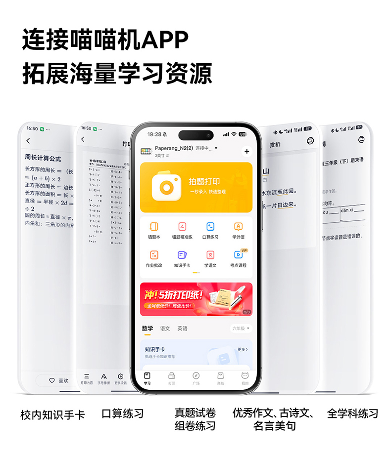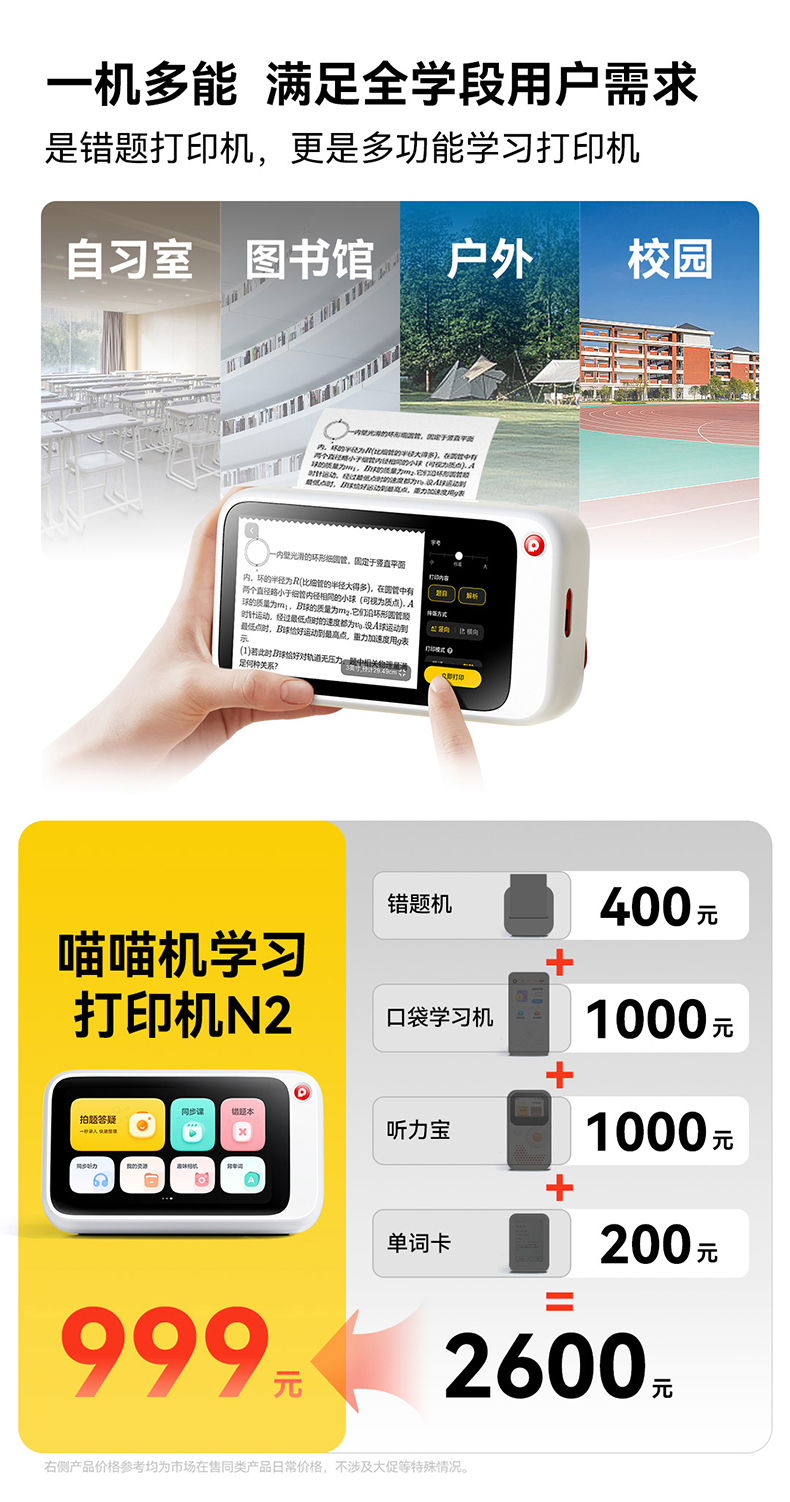 【能打印还能学】喵喵机【N2 博学版】无需手机即拍即印 拍搜解答视屏讲解 同步视频课免费看