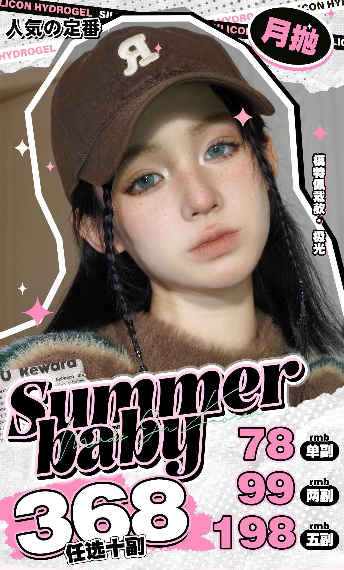 summerbaby月抛,78/一副,99/两副,198/五副,368/十副,最高度数有1000
