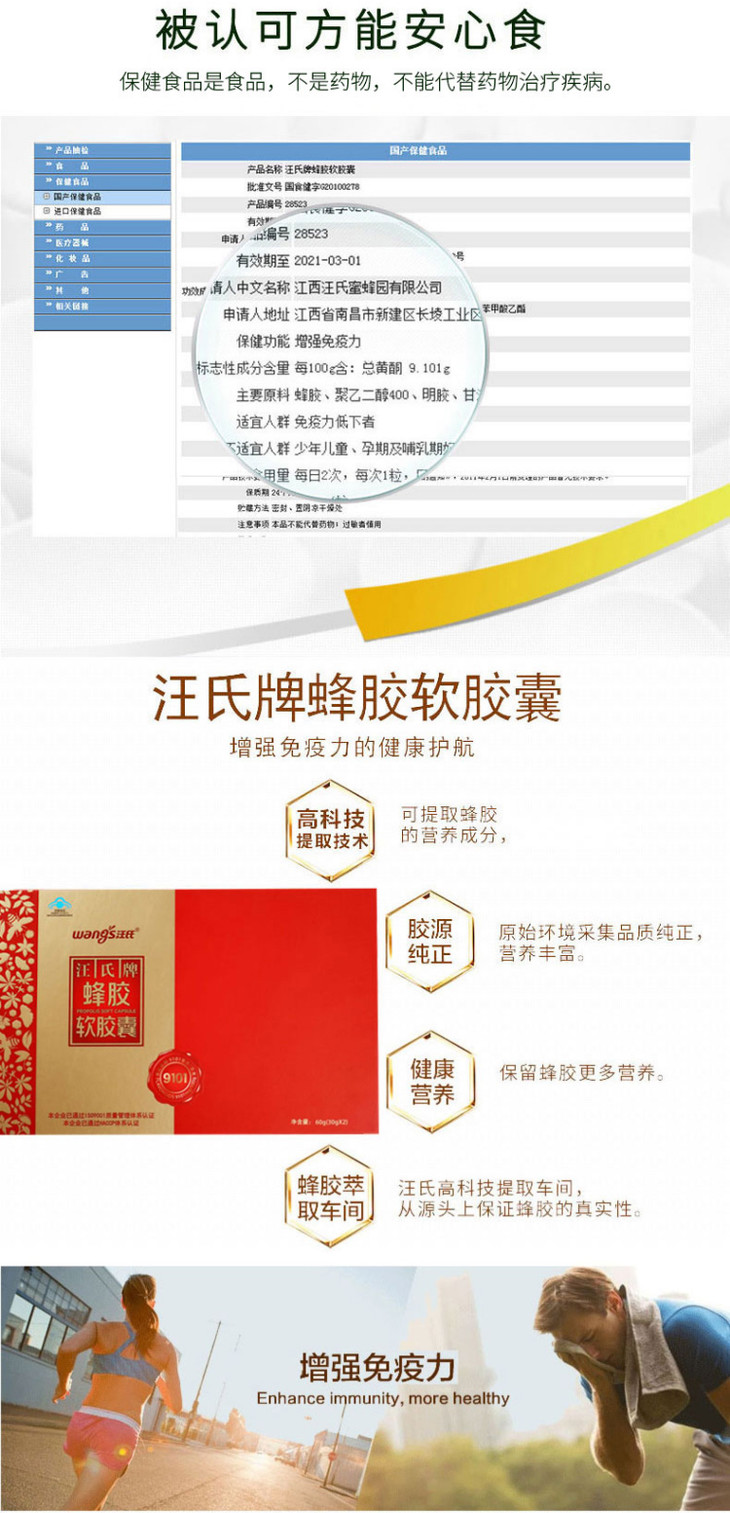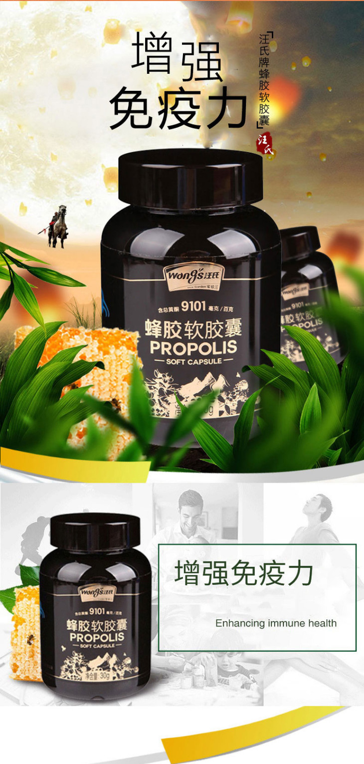 【汪氏】铂金蜂胶 500mg/粒*60粒*2瓶