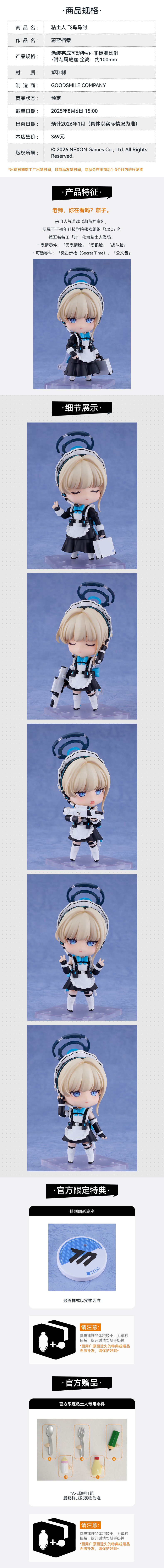 【GSC补款】粘土人 飞鸟马时 蔚蓝档案 附官方限定特典