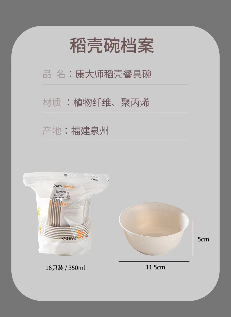 【预售-2月27日配送】康大师稻壳餐具碗*3包(350ml*16+4个/包)