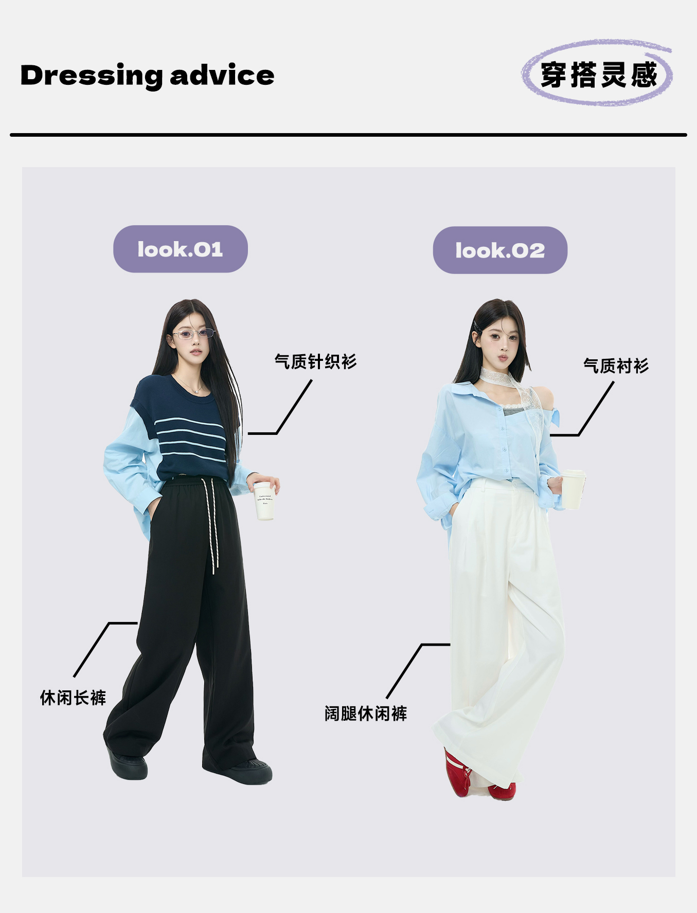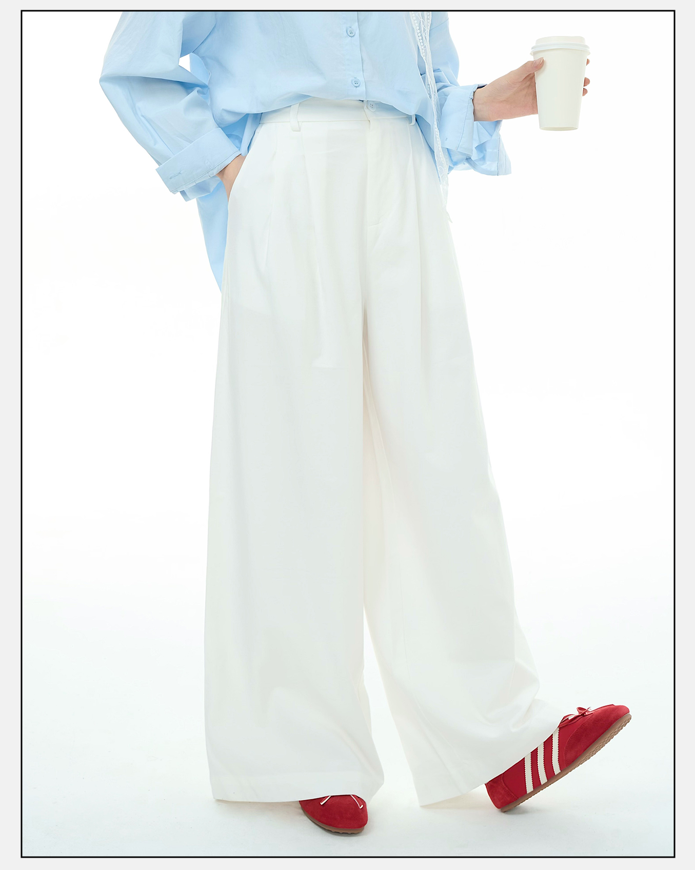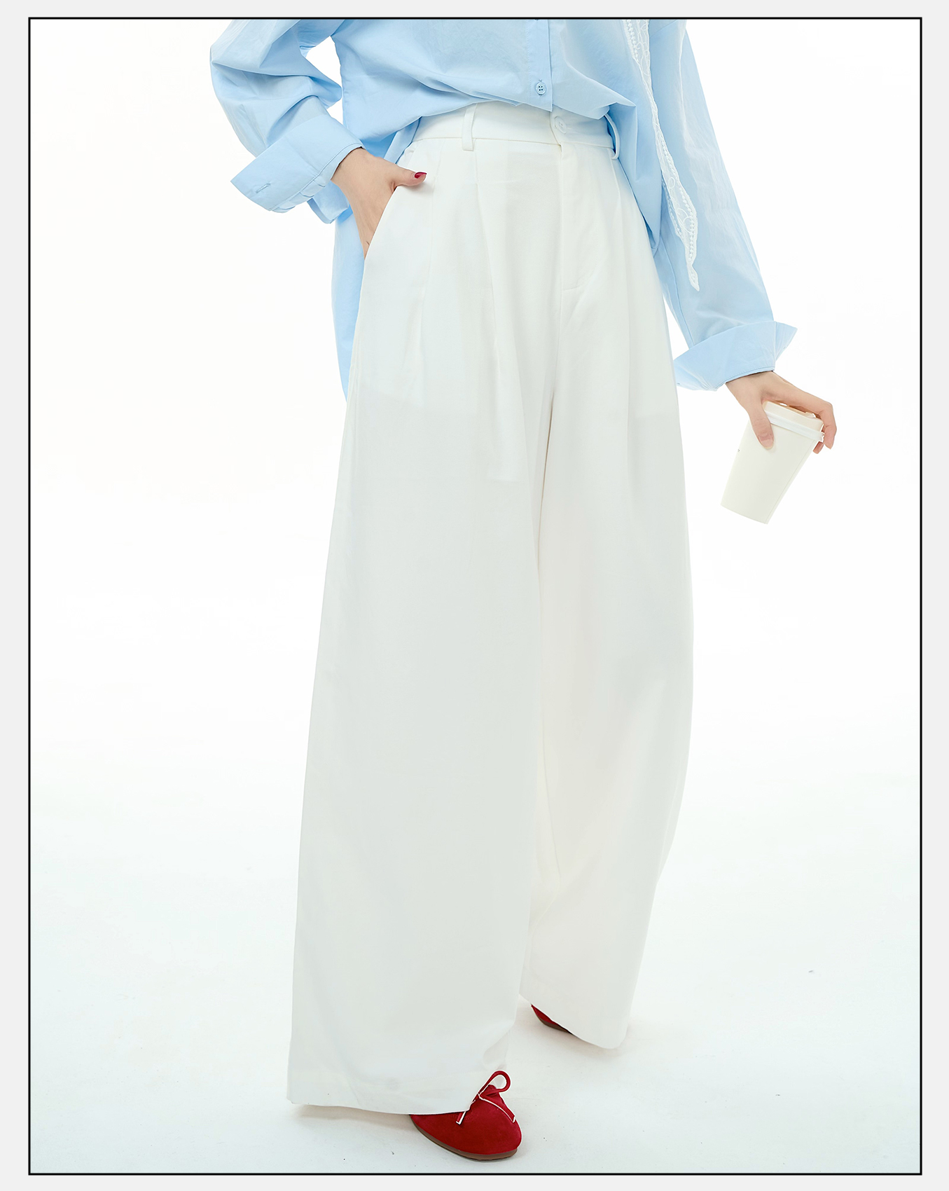 P&X设计师女装2025秋季高腰透气裤阔腿休闲长裤825309180 白色