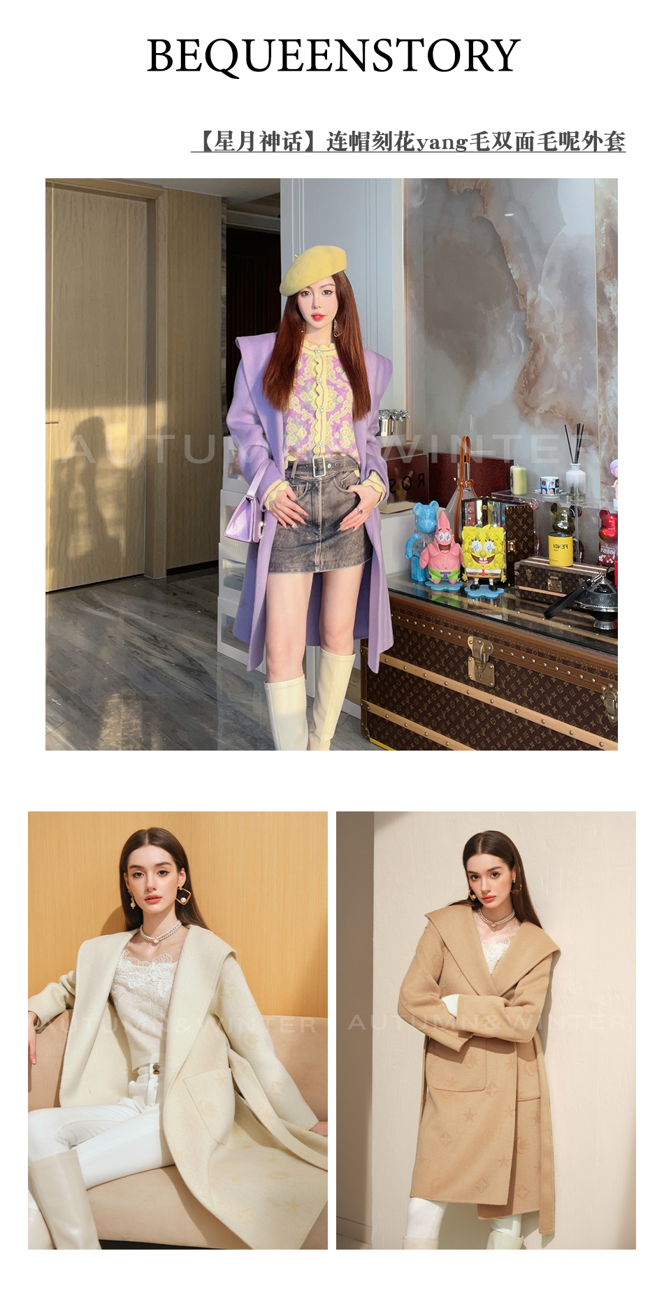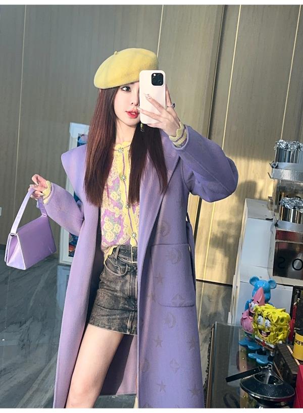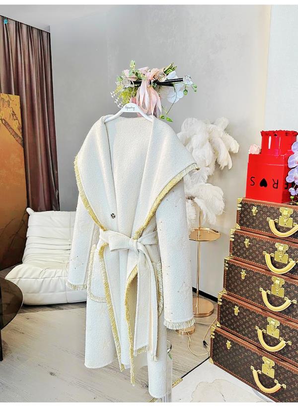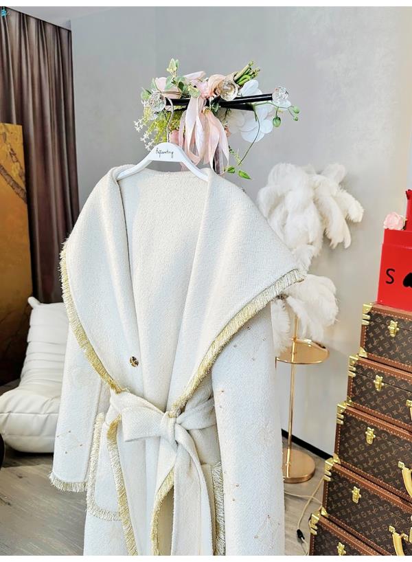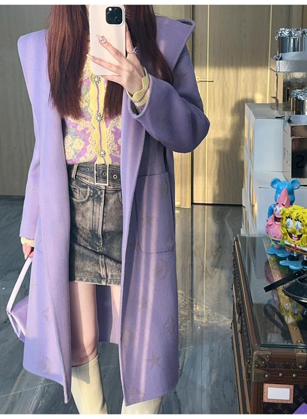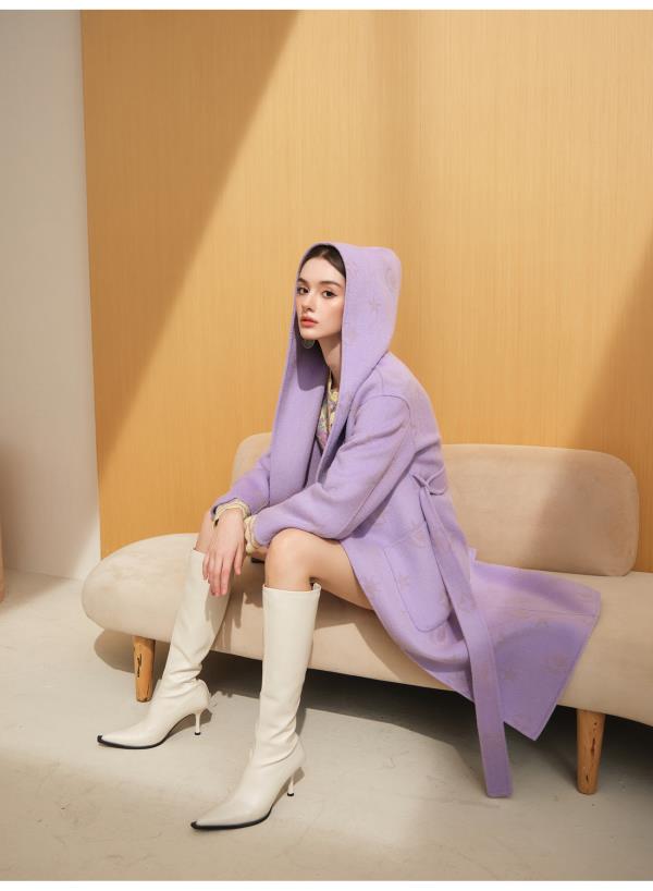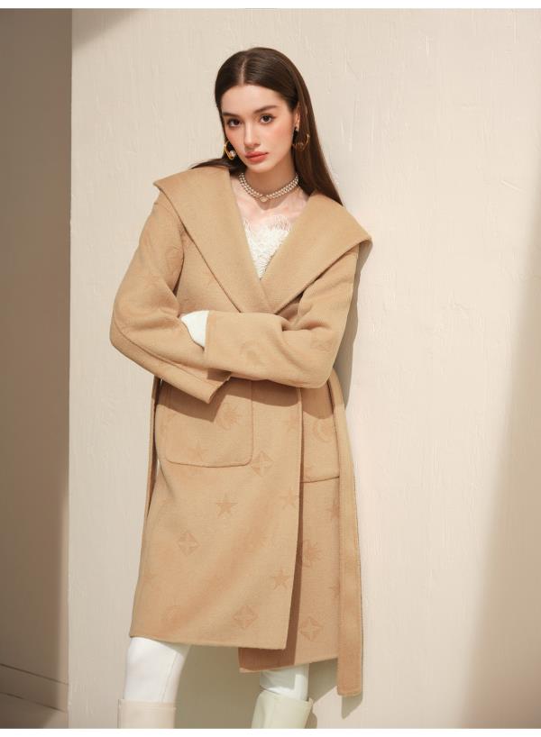 【年终福利,不退不换】【星月神话】气质连帽刻花羊毛双面毛呢外套配本布腰带