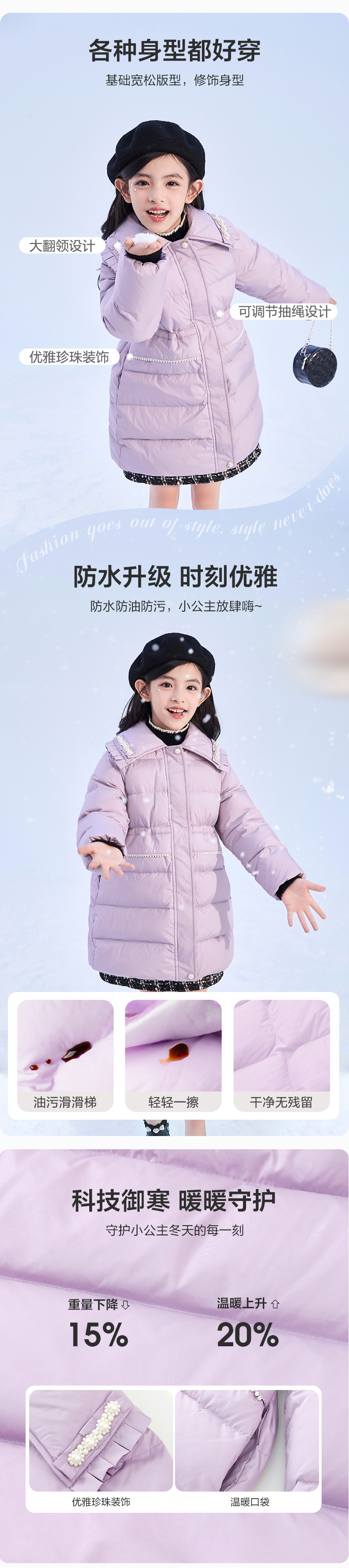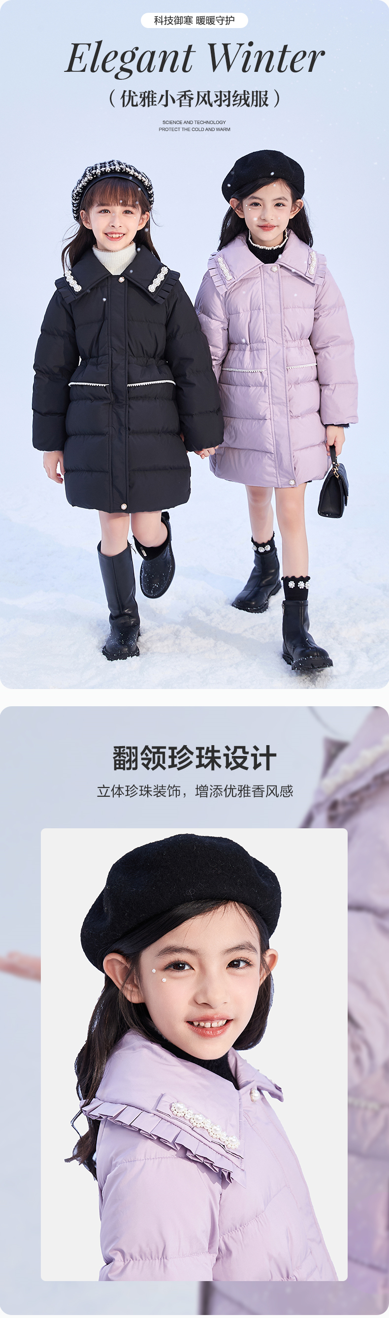 笛莎DESHA童装女童羽绒服2023冬季新款时尚款羽绒服