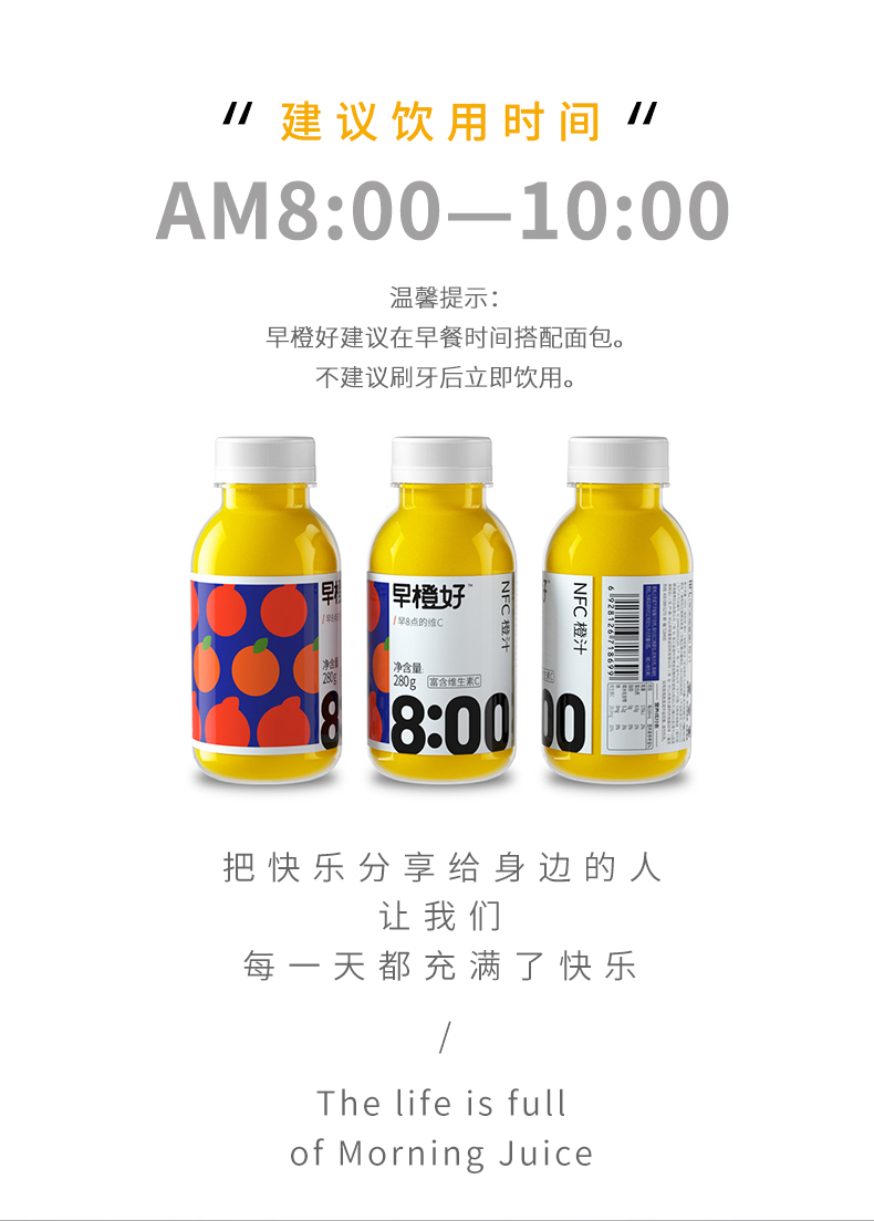 猫太推荐——早橙好NFC果汁饮料 喝饱阳光的果汁 橙汁/葡萄汁/芭乐汁 280g*8瓶/箱