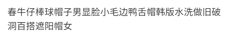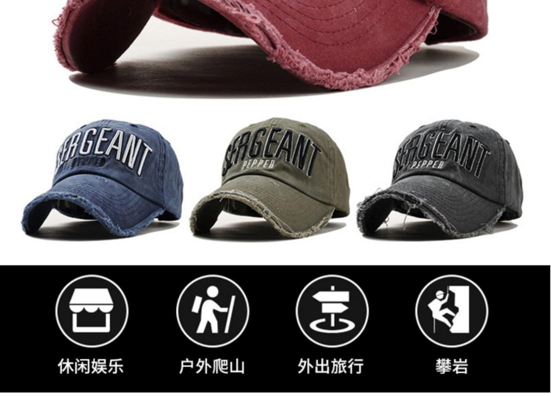 牛仔棒球街头显脸小毛边鸭舌帽韩版水洗做旧破洞百搭遮阳帽钓鱼帽