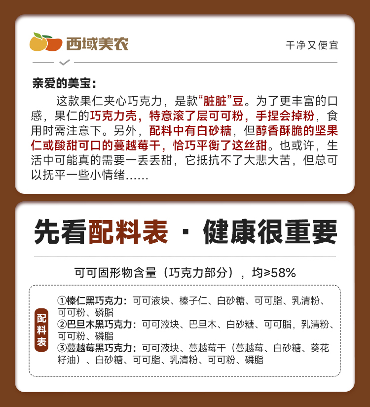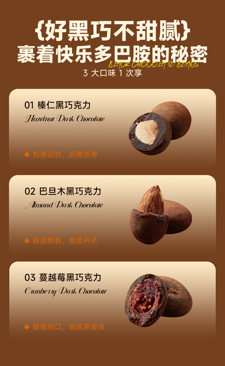 西域美农 缤纷巧乐汇果仁夹心黑巧克力豆268g(三口味组合榛仁巧克力、巴旦木巧克力、蔓越莓巧克力)