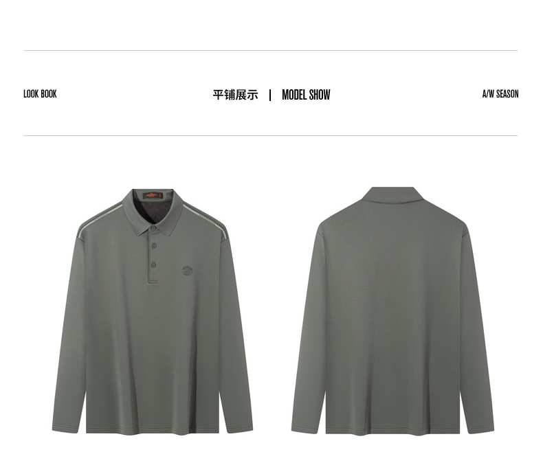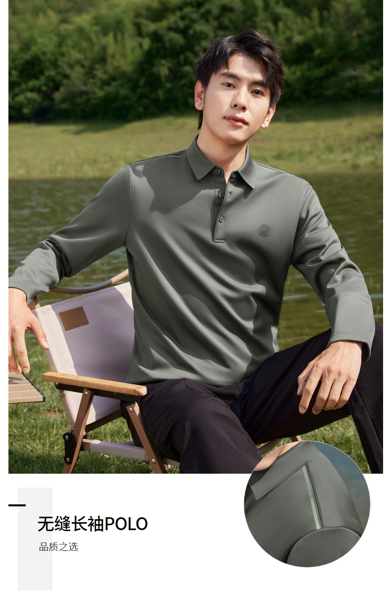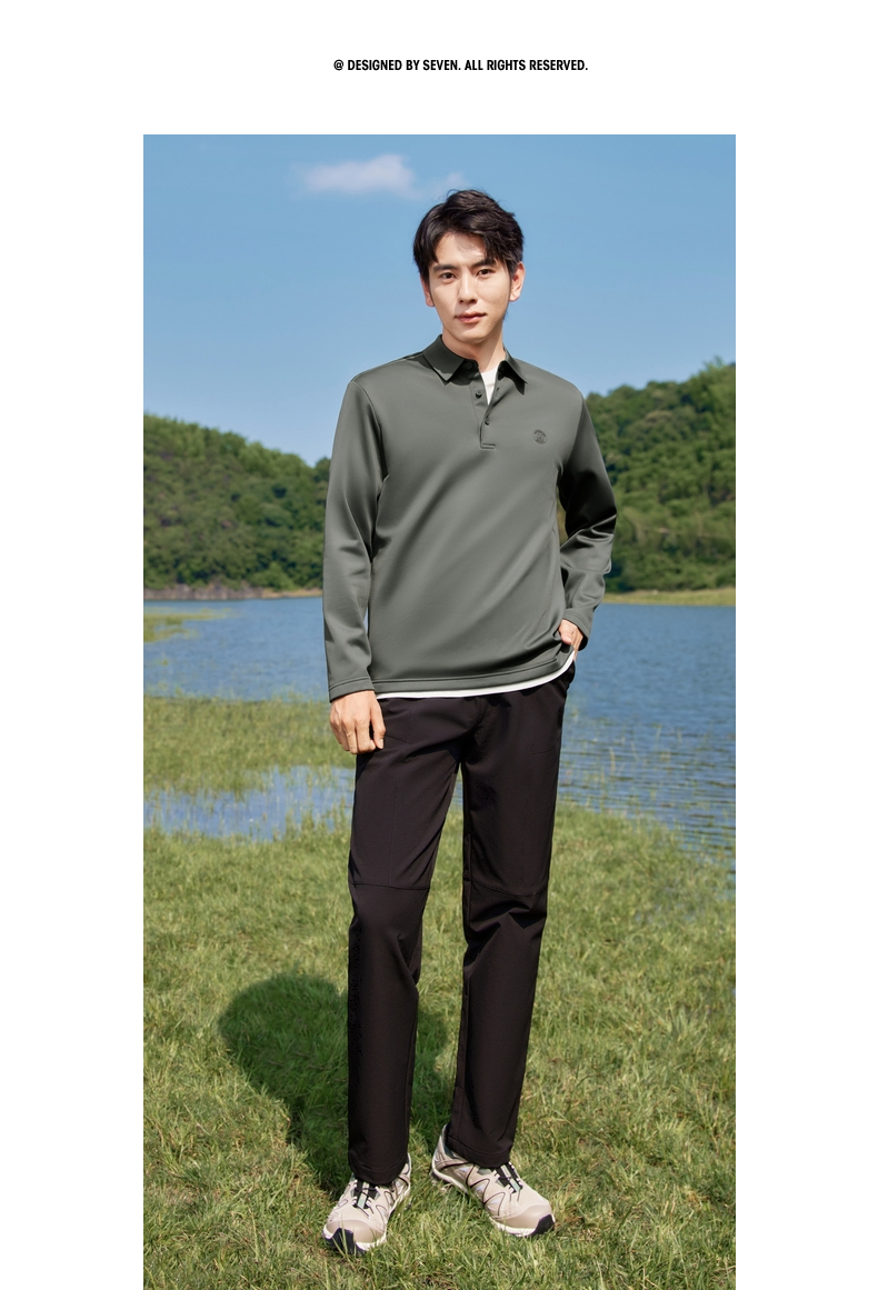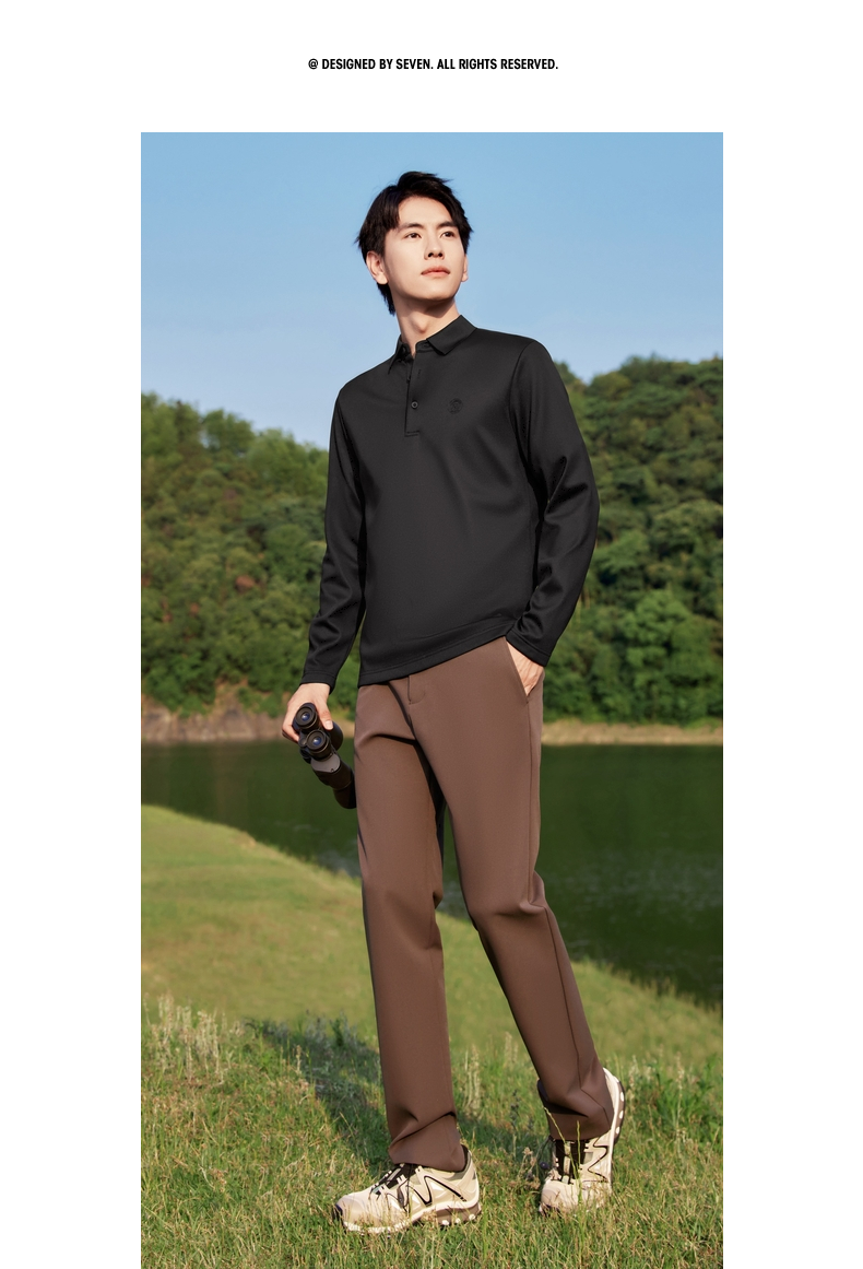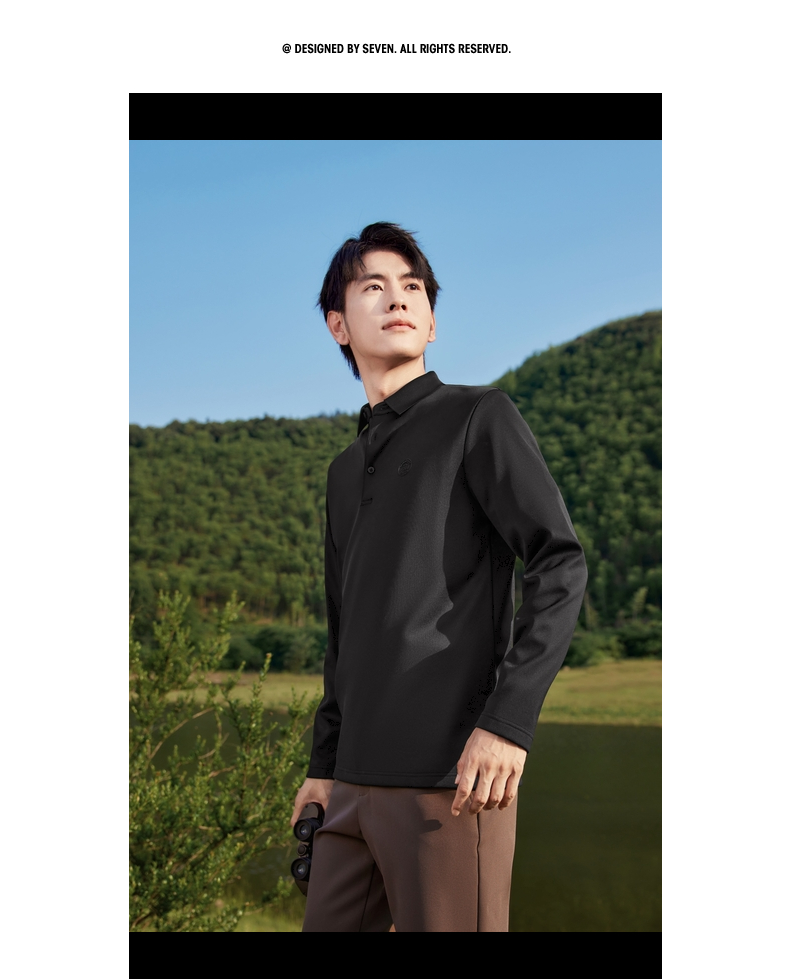【户外/无缝/高弹】柒牌易打理长袖polo衫男装含羊毛保暖翻领T恤129T70070