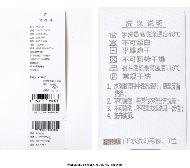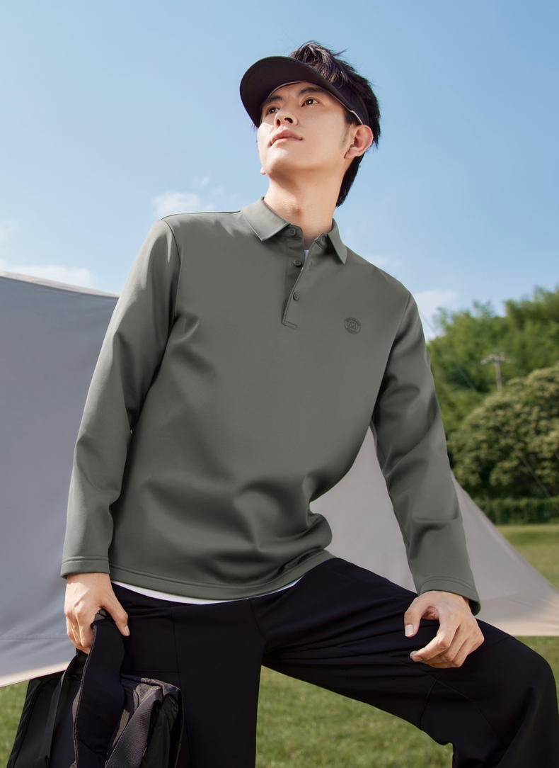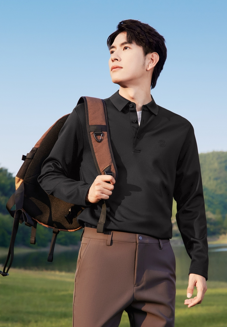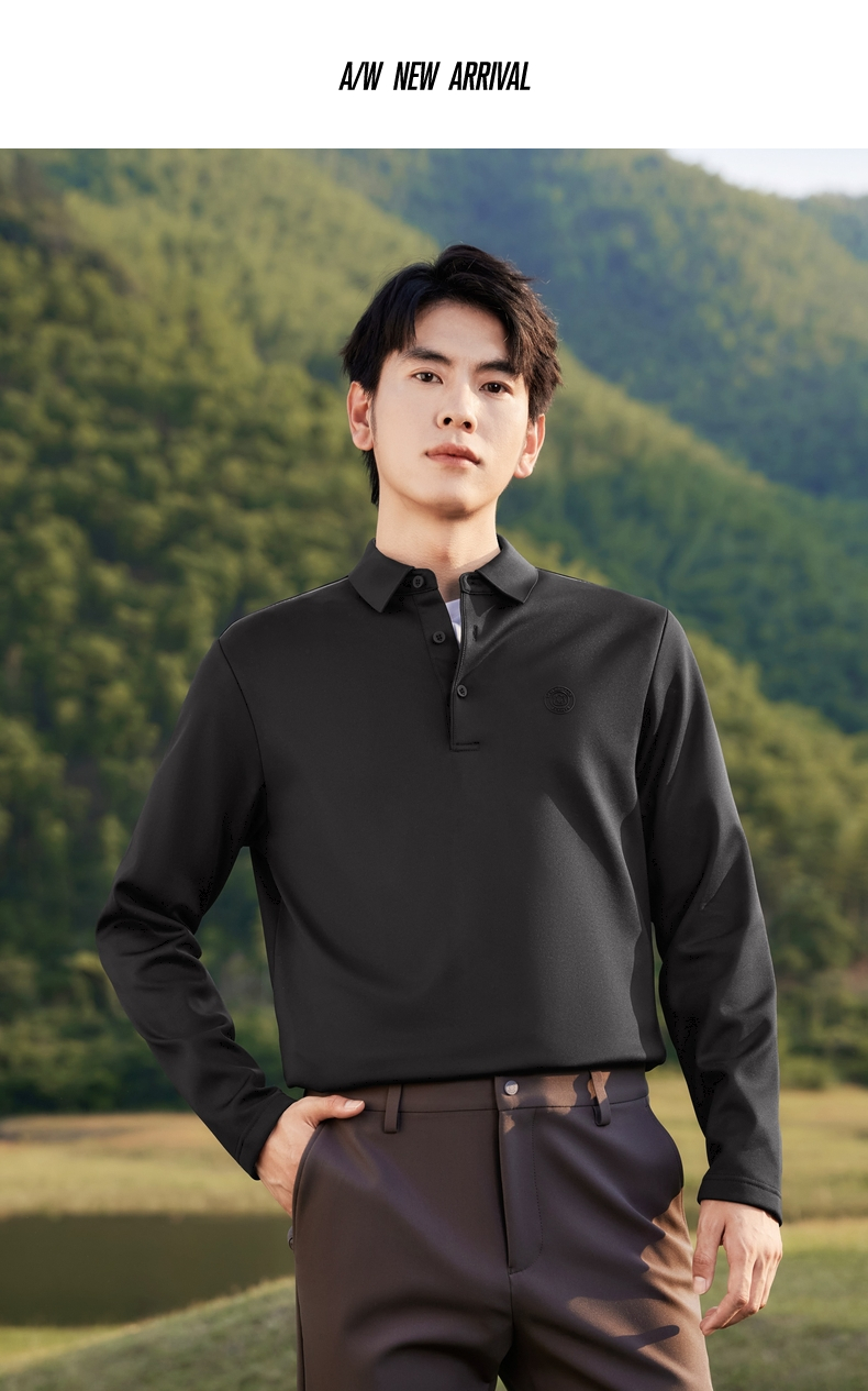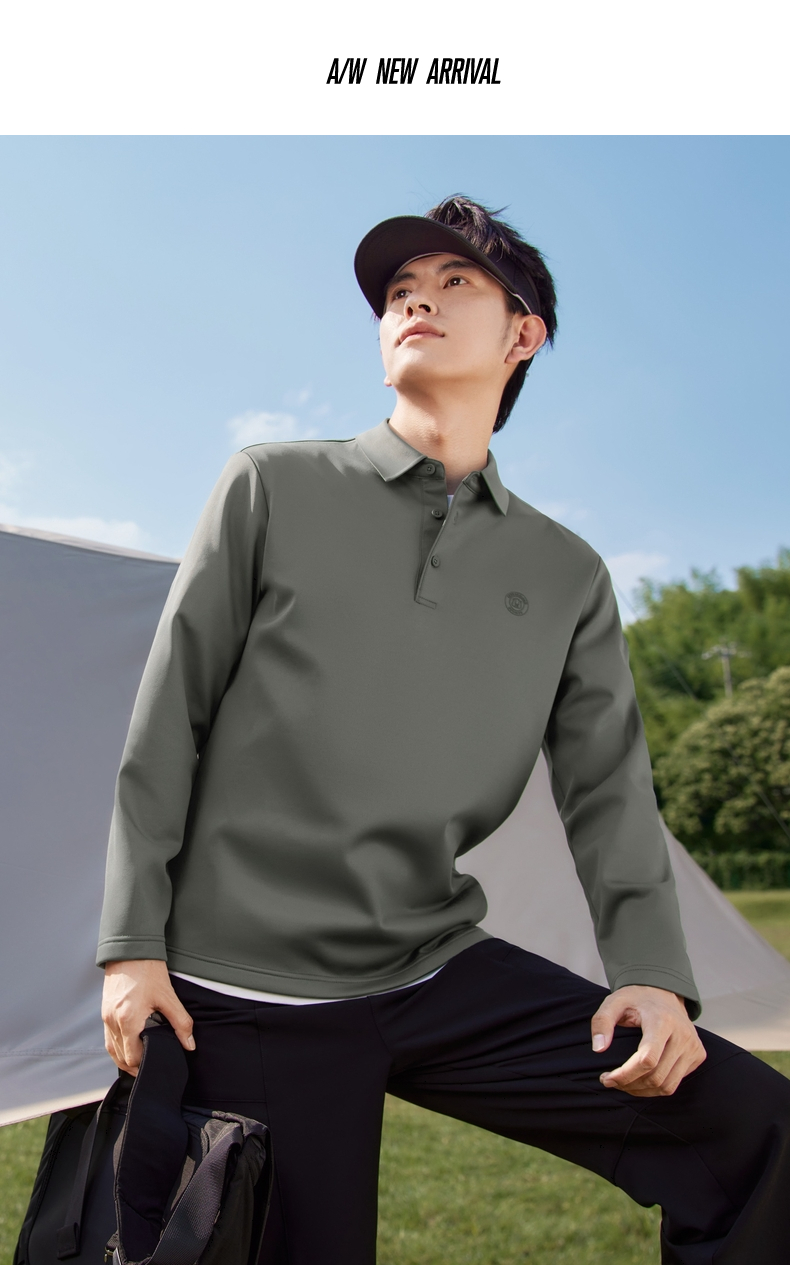 【户外/无缝/高弹】柒牌易打理长袖polo衫男装含羊毛保暖翻领T恤129T70070