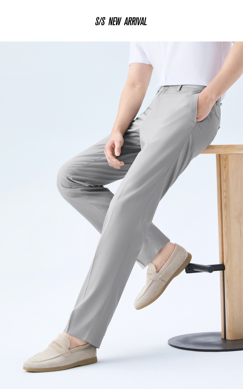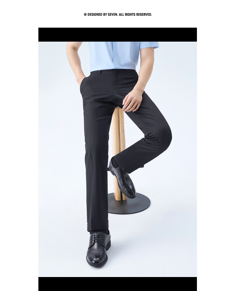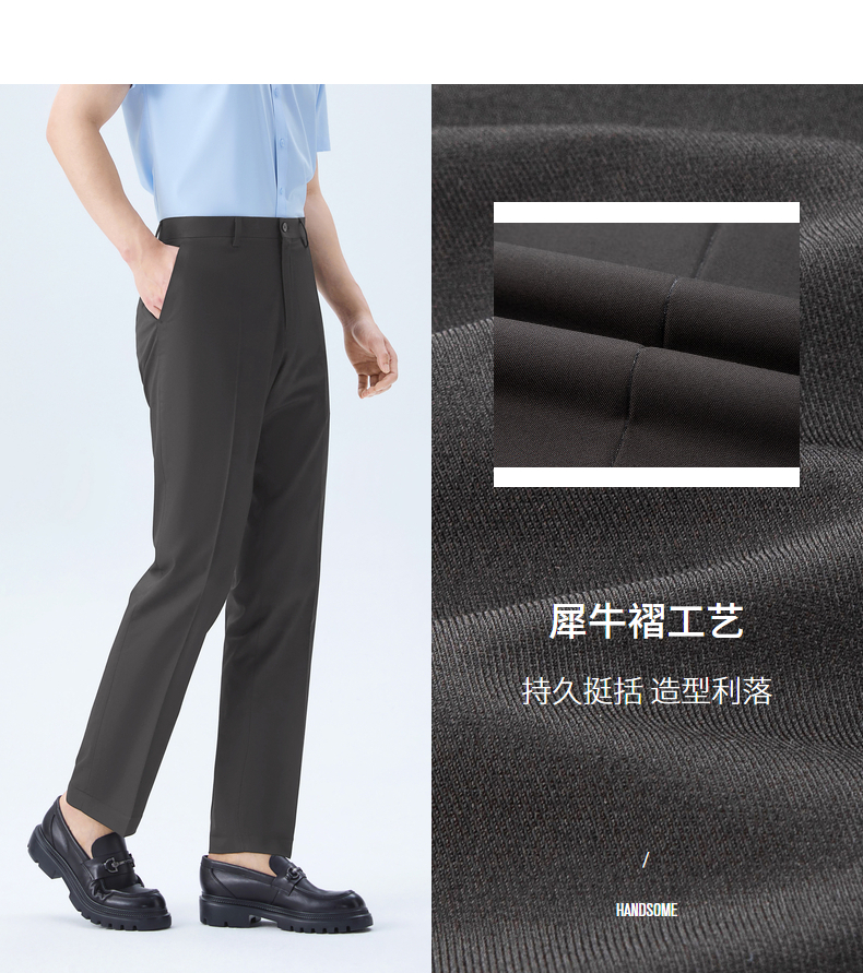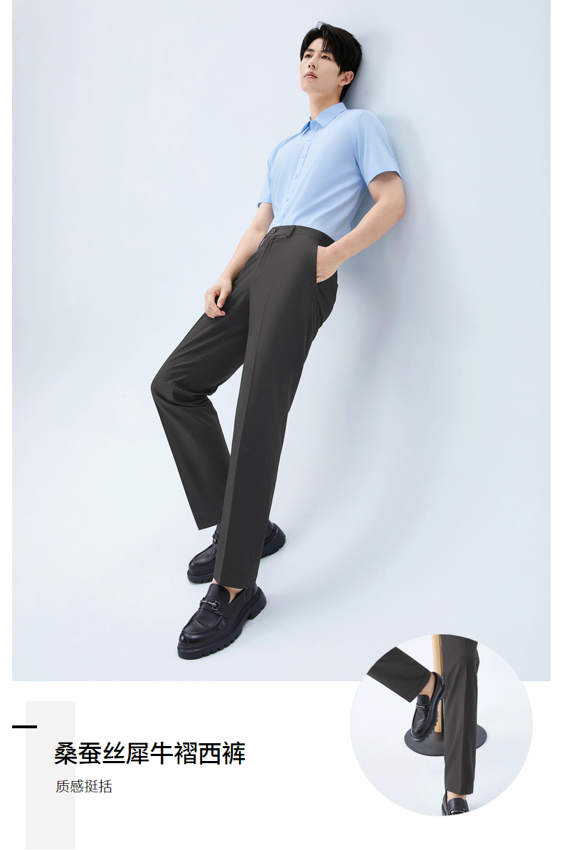 【犀牛褶/含桑蚕丝】柒牌男式商务混纺西裤2026春季新款修身长裤 130H72200