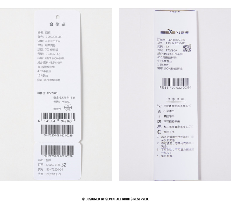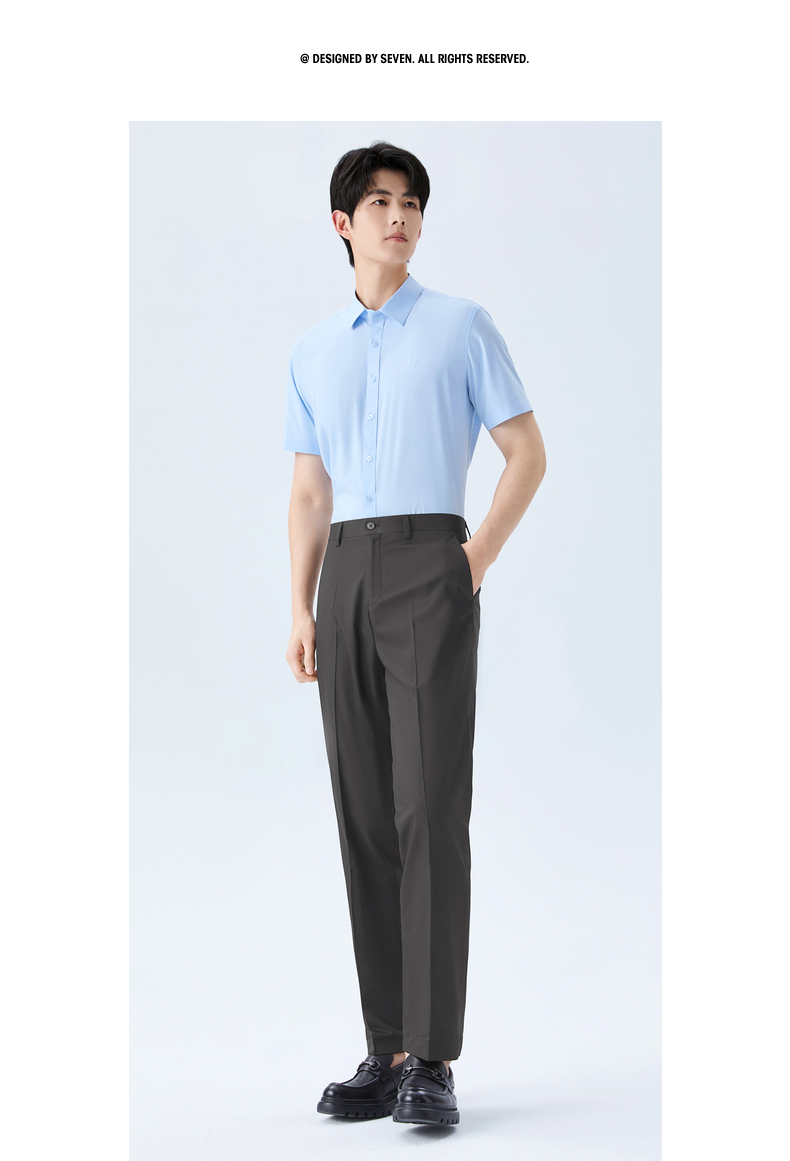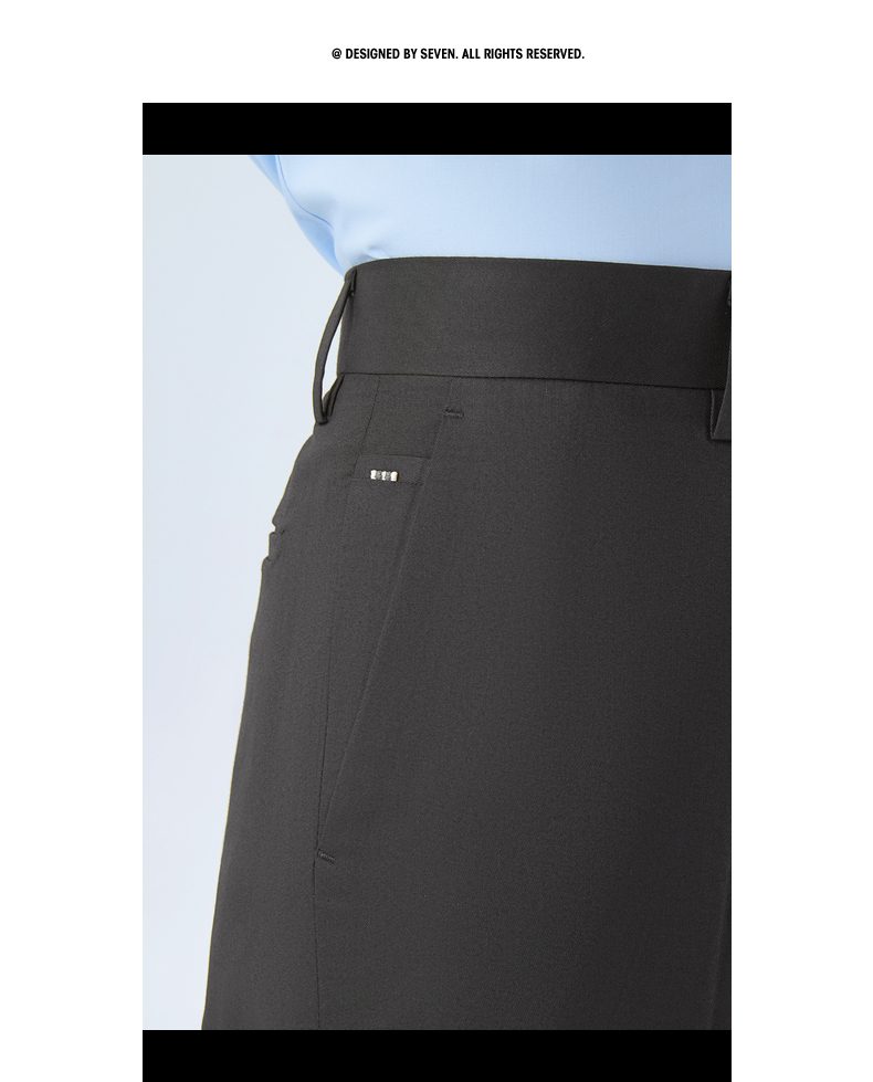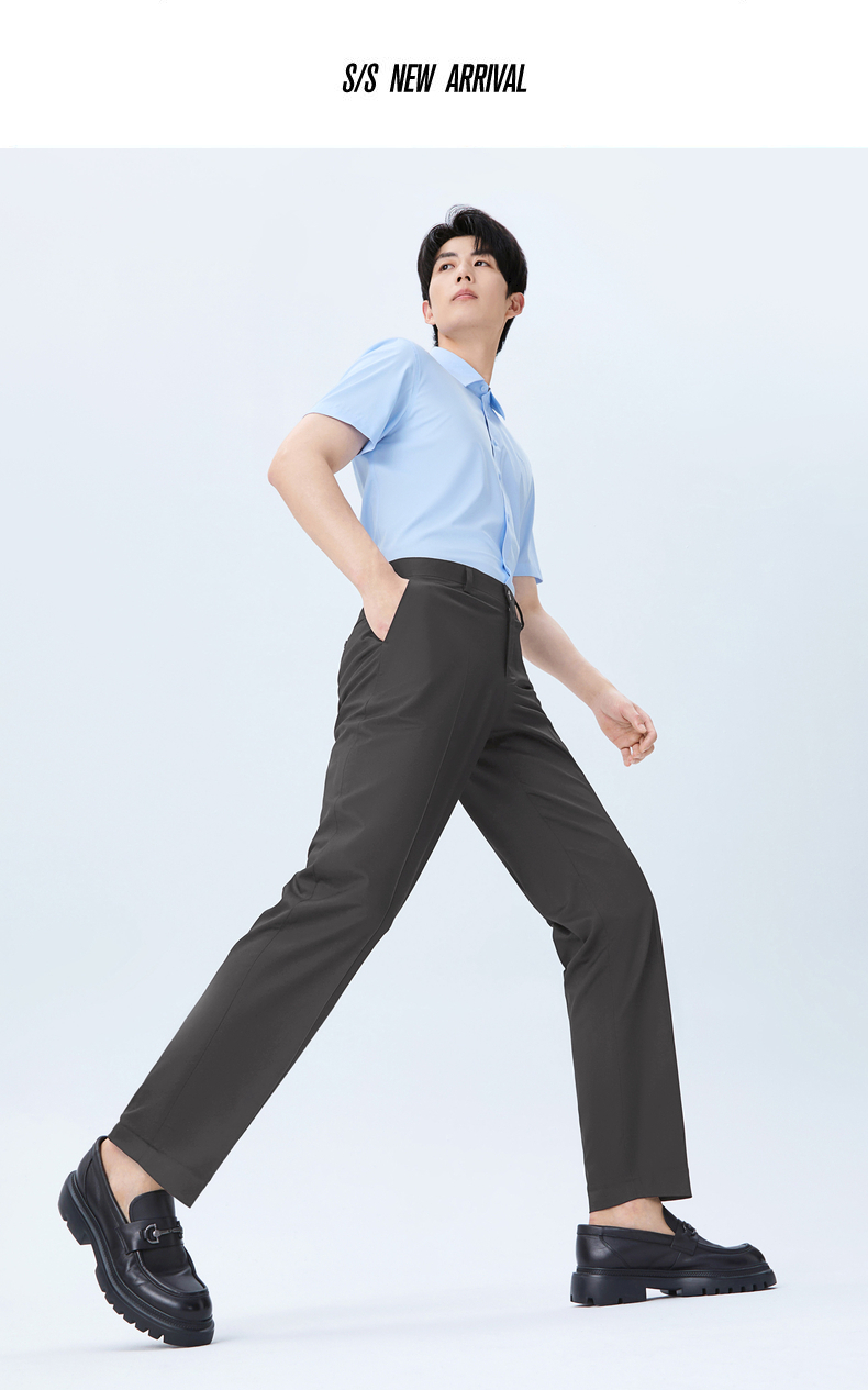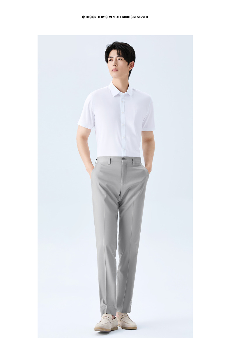 【犀牛褶/含桑蚕丝】柒牌男式商务混纺西裤2026春季新款修身长裤 130H72200