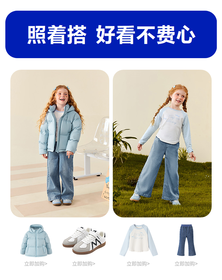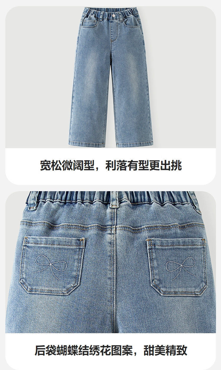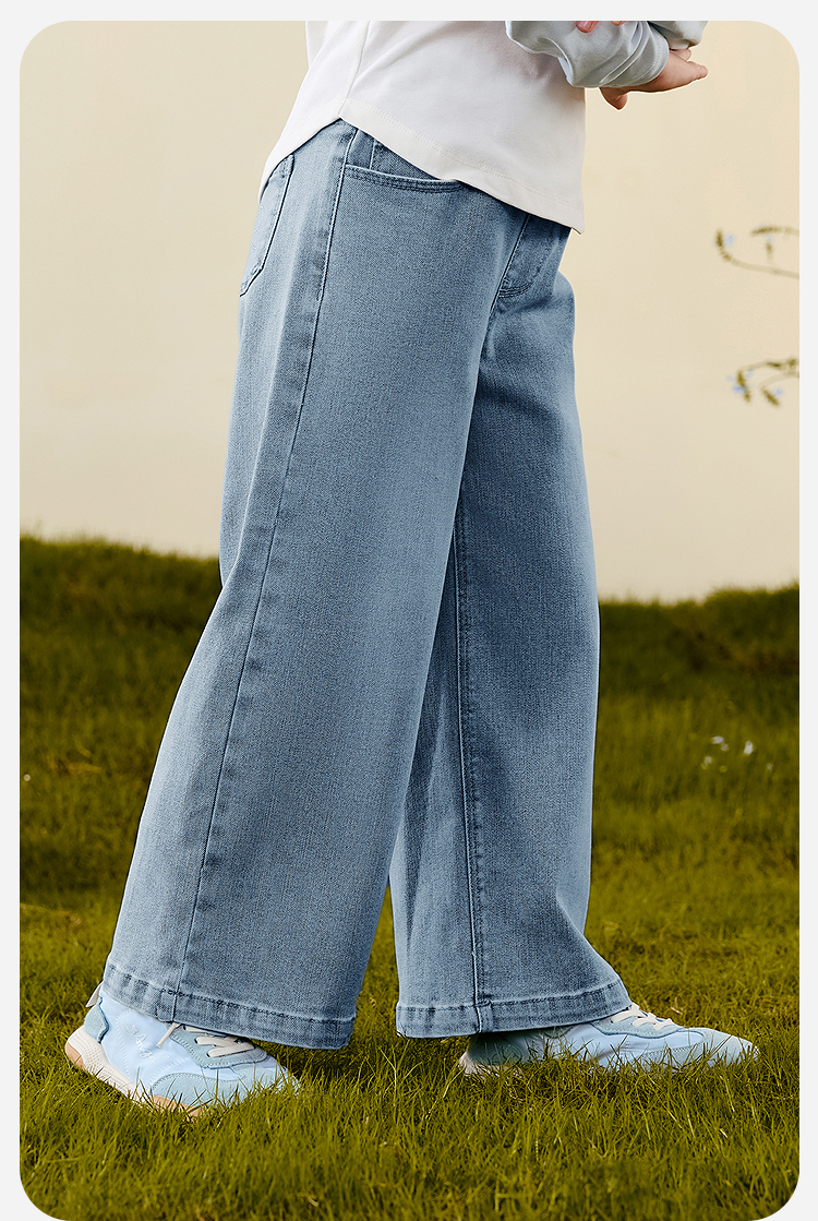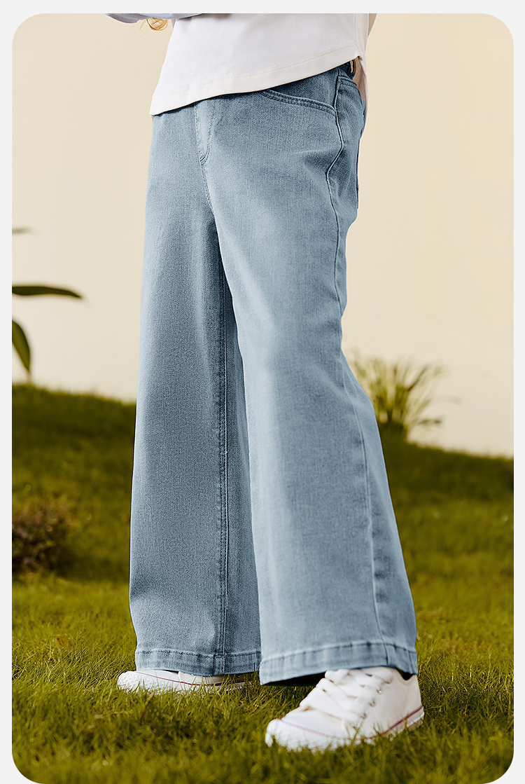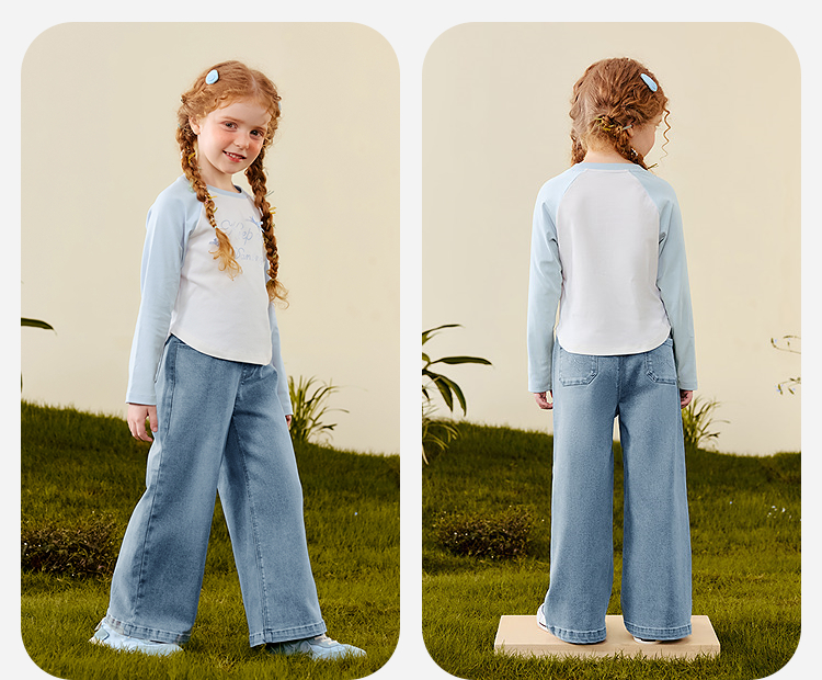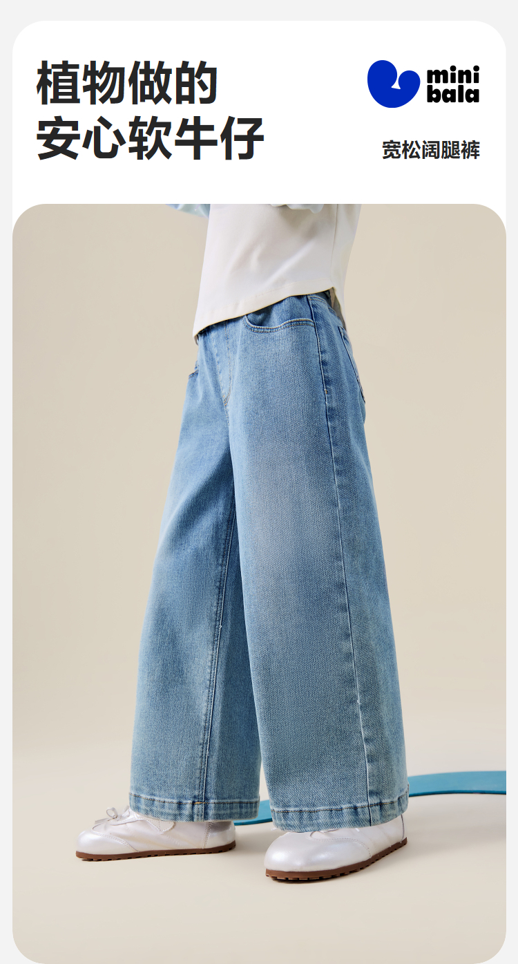 【软牛仔】迷你巴拉女童植物天丝裤子秋柔软长裤宽松阔腿裤