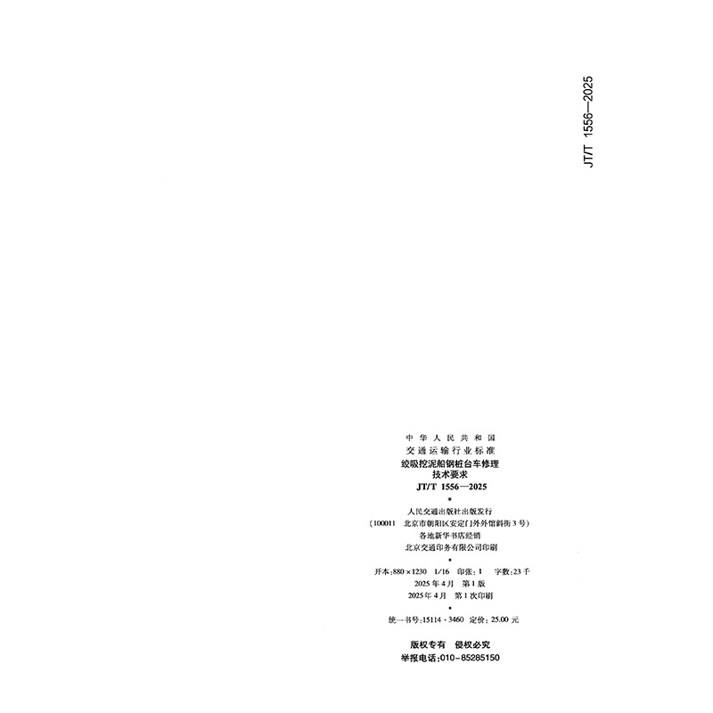 书名:绞吸挖泥船钢桩台车修理技术要求(JT/T 1556—2025)