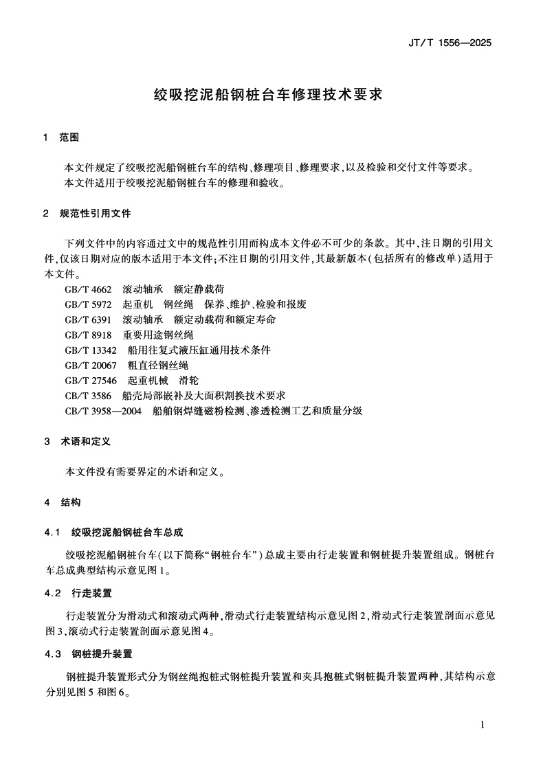 绞吸挖泥船钢桩台车修理技术要求(JT/T 1556—2025)