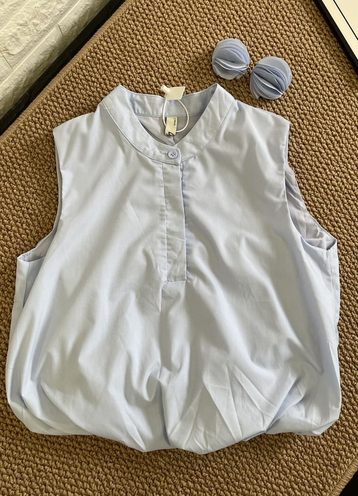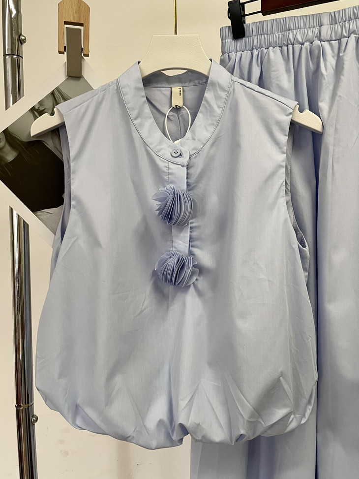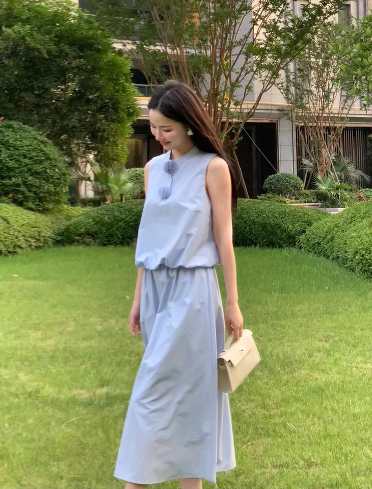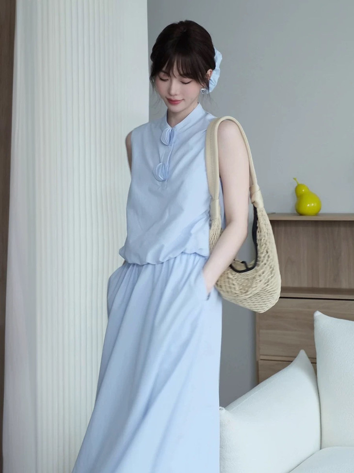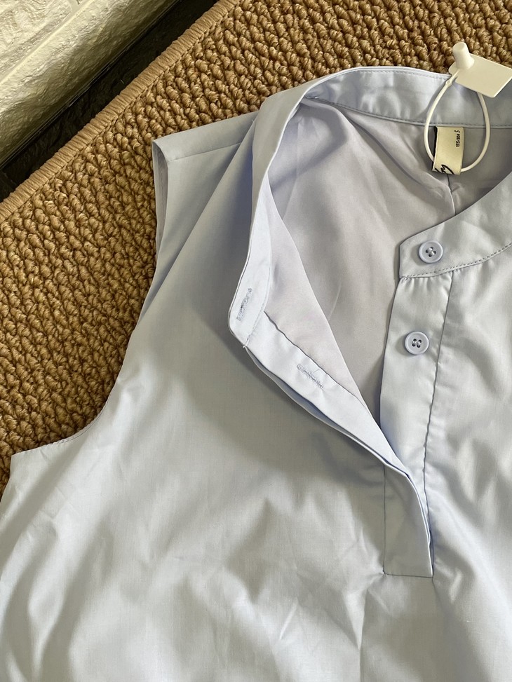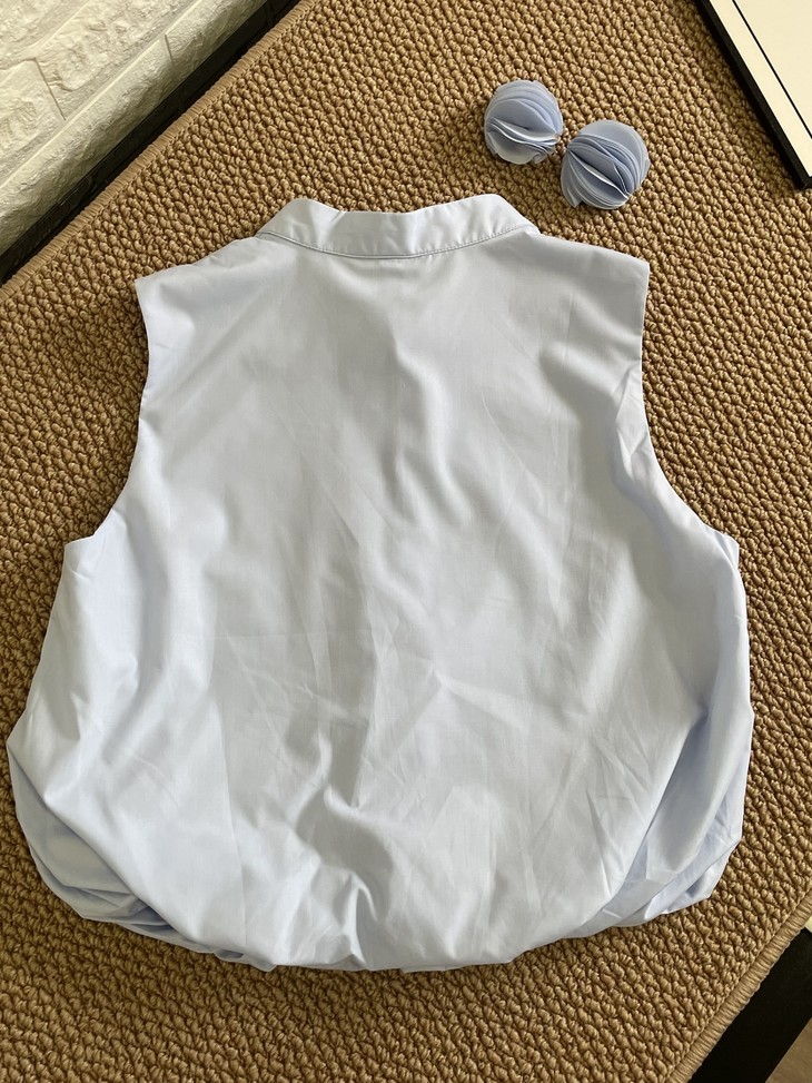 无袖设计 优化肩颈线条,举手投足不受束缚 领口手作立体书页球 如翻卷书质般灵动,灌注艺术气息 隐藏式半开门襟 简洁美观,穿脱轻松