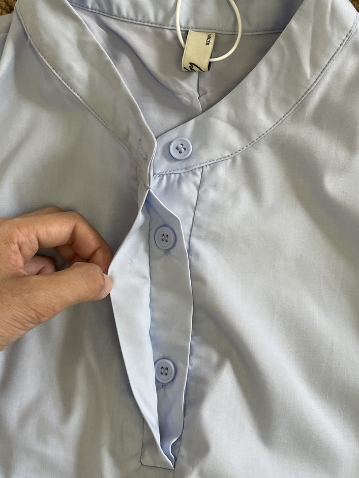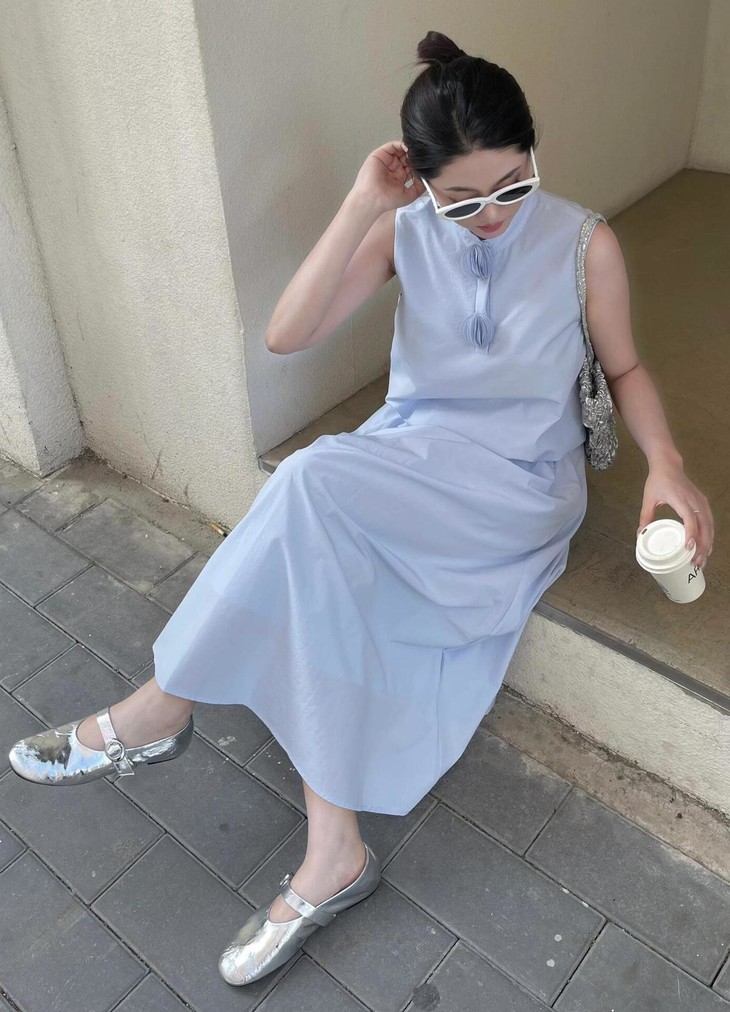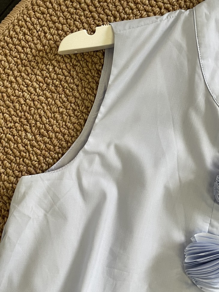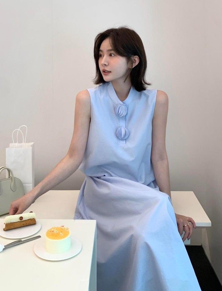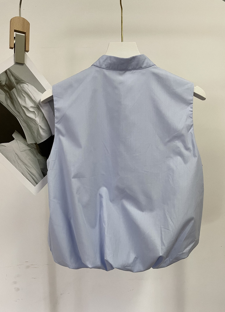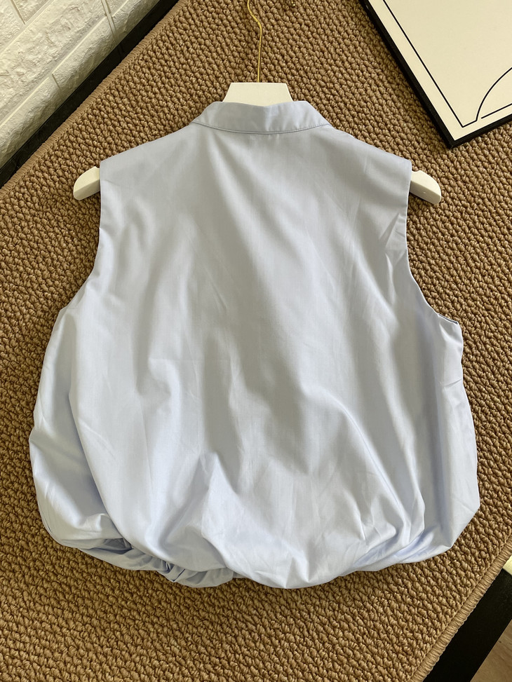 无袖设计 优化肩颈线条,举手投足不受束缚 领口手作立体书页球 如翻卷书质般灵动,灌注艺术气息 隐藏式半开门襟 简洁美观,穿脱轻松