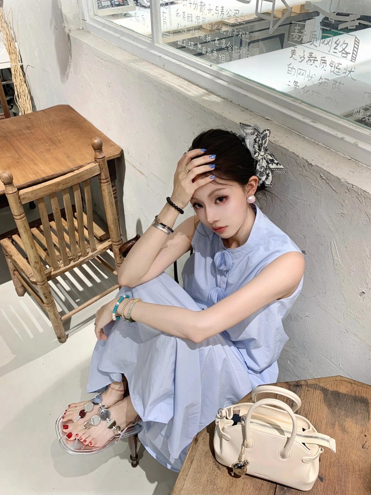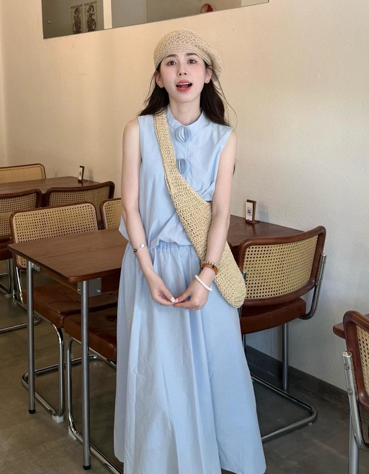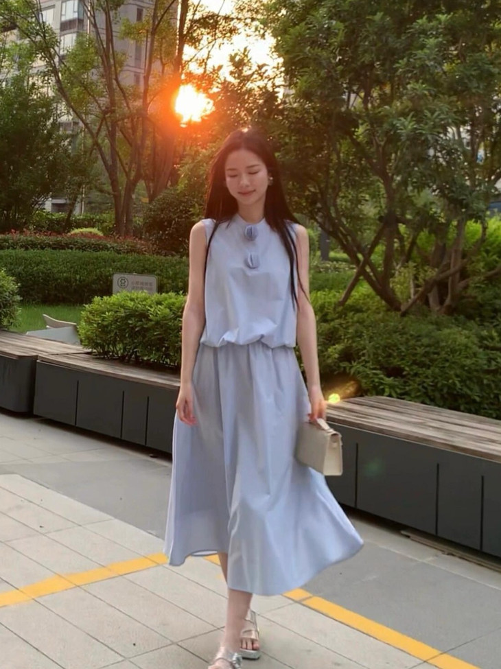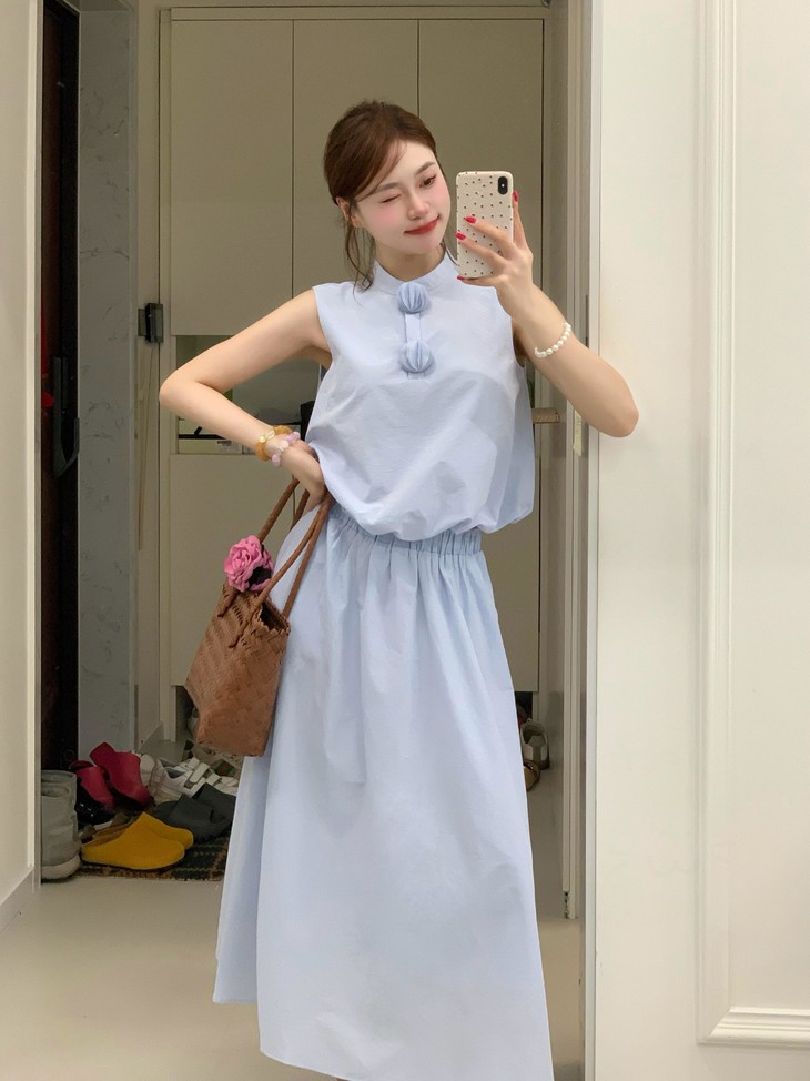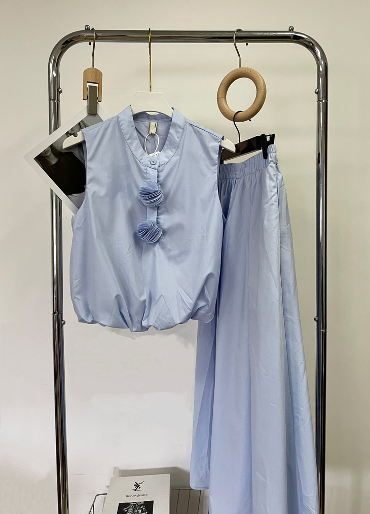 淡蓝色立体书页花苞无袖背心松紧半裙套装 【材质】面料:80%聚酯纤维20%棉;里料:100%聚酯纤维 【颜色】蓝色套装 【尺码】S-XL(80-125斤)