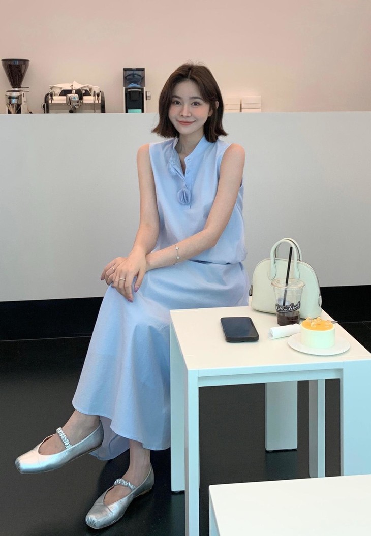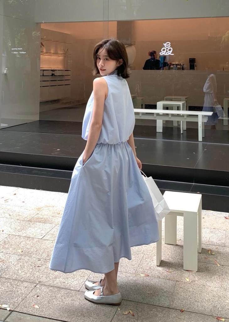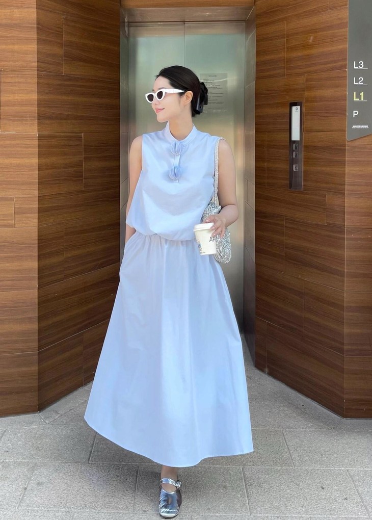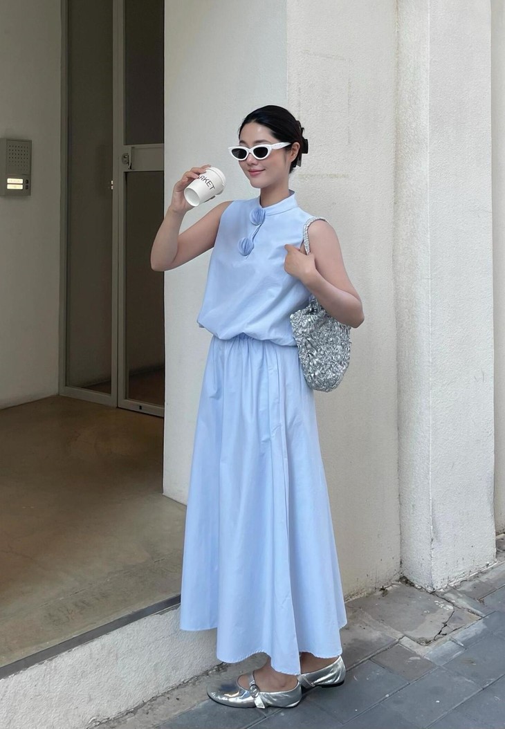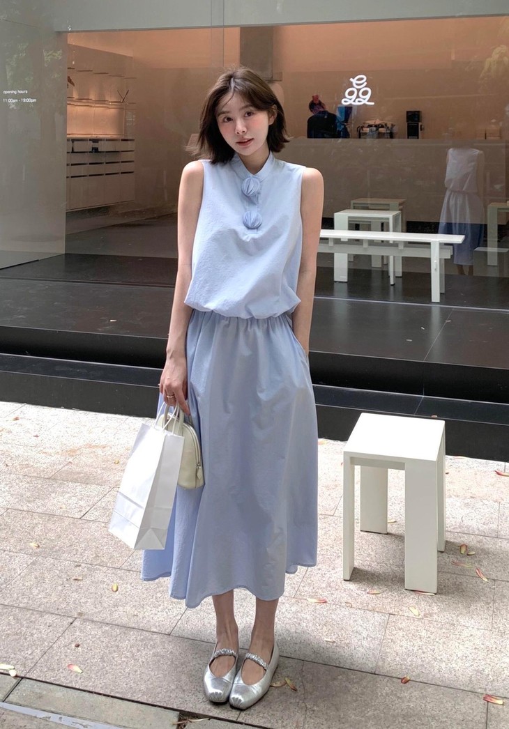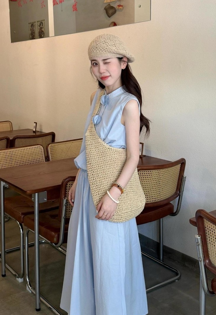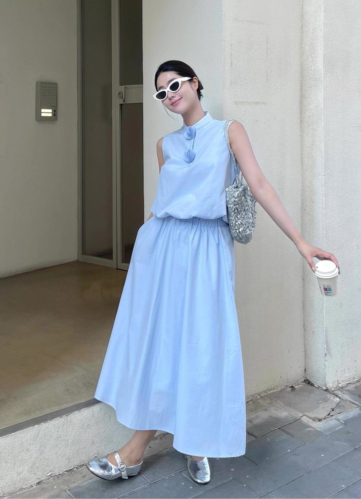 👏【乔欣同款】今夏C位套装已就位❗️官网1400+ ❗️【AUChris淡蓝色立体书页花苞无袖背心半裙套装53580👍】 😍尽显浪漫随性~活力十足