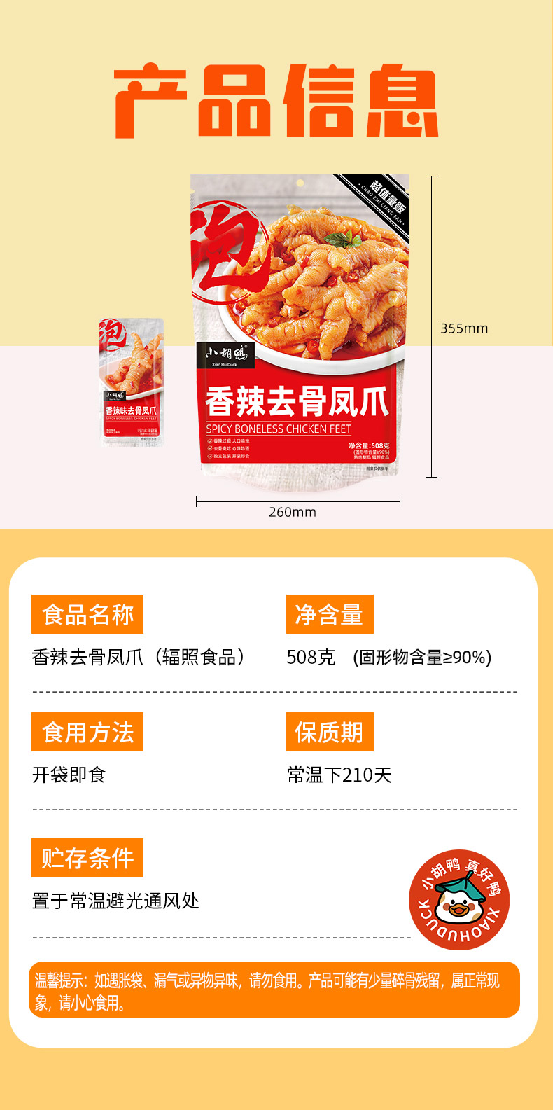 家庭装香辣去骨凤爪大克重508g麻辣鲜香即食小吃追剧必备
