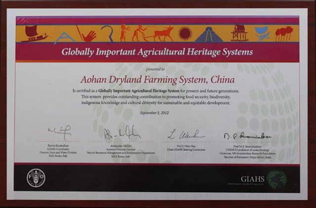 这两块牌子,彰显着敖汉旱作农业系统和敖汉小米在全球和天朝的地位。