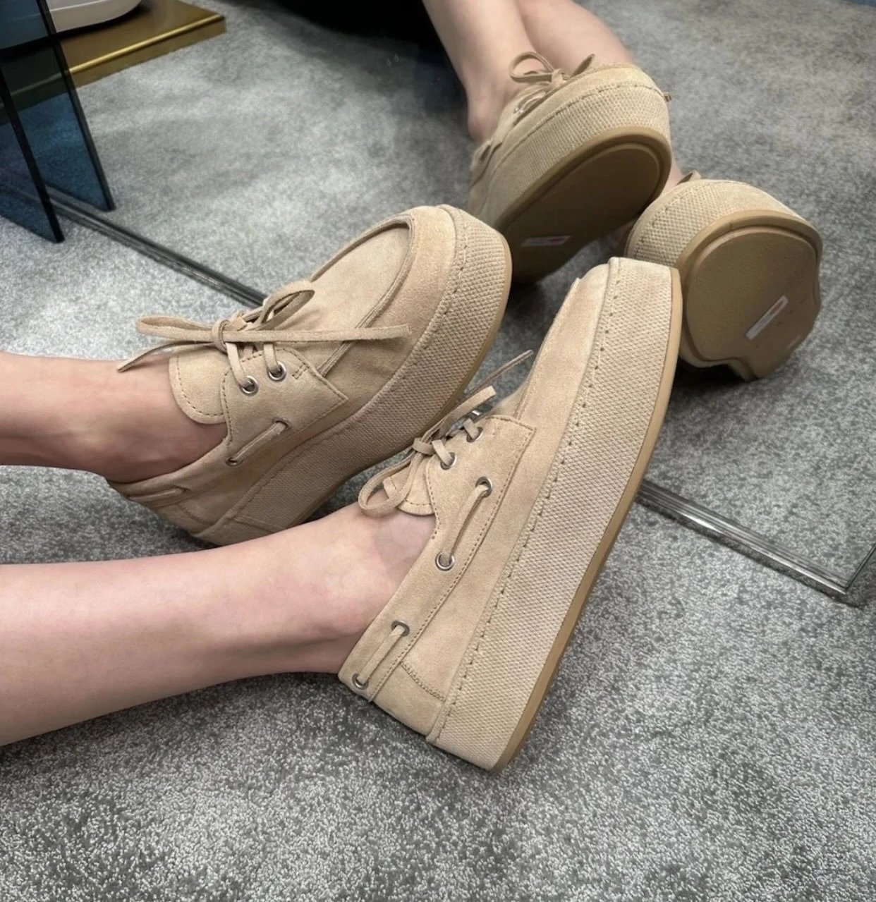 重磅渠道 小H厚底乐福鞋 麂皮系带乐福鞋 厚底超轻休闲鞋