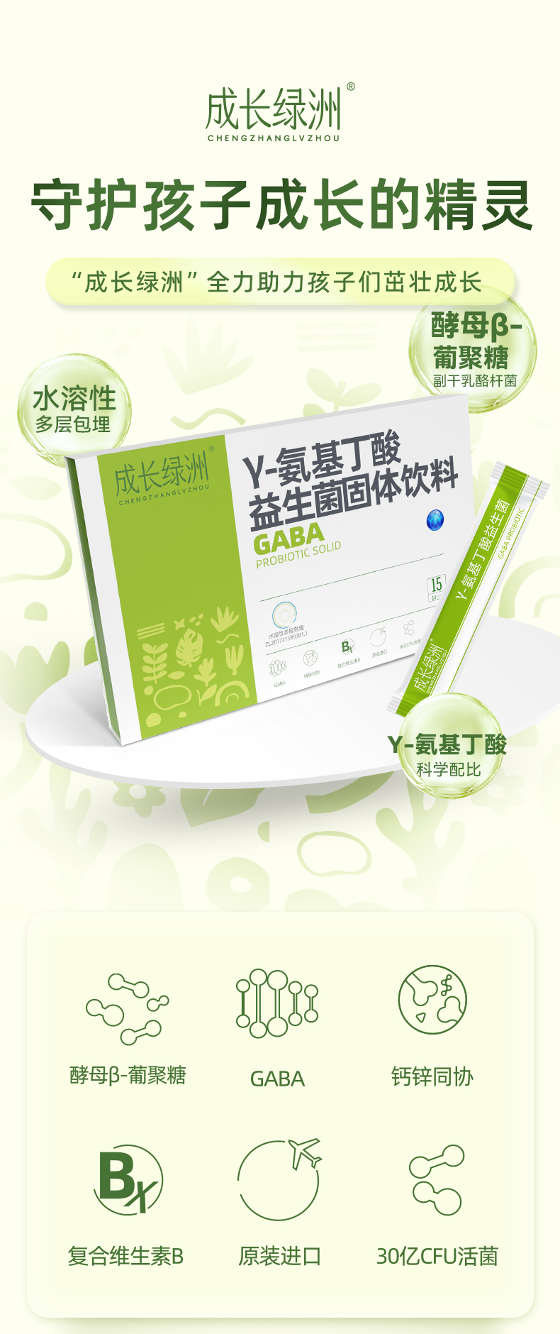 成长绿洲 氨基丁酸益生菌酵母葡聚糖多种维生素儿童