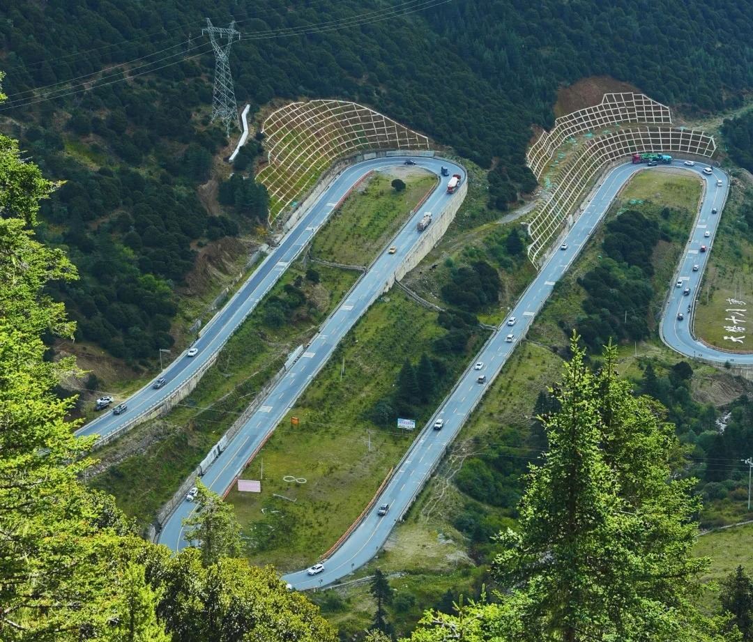 天路十八弯 回环的公路像银带缠在青山腰上
