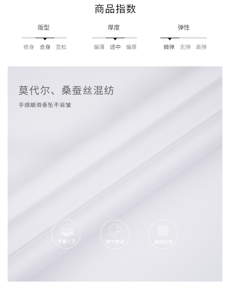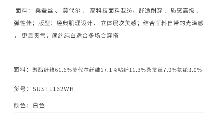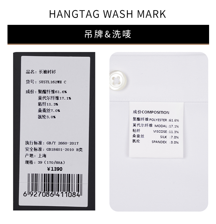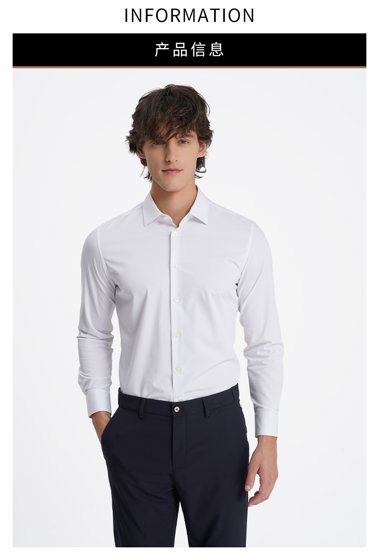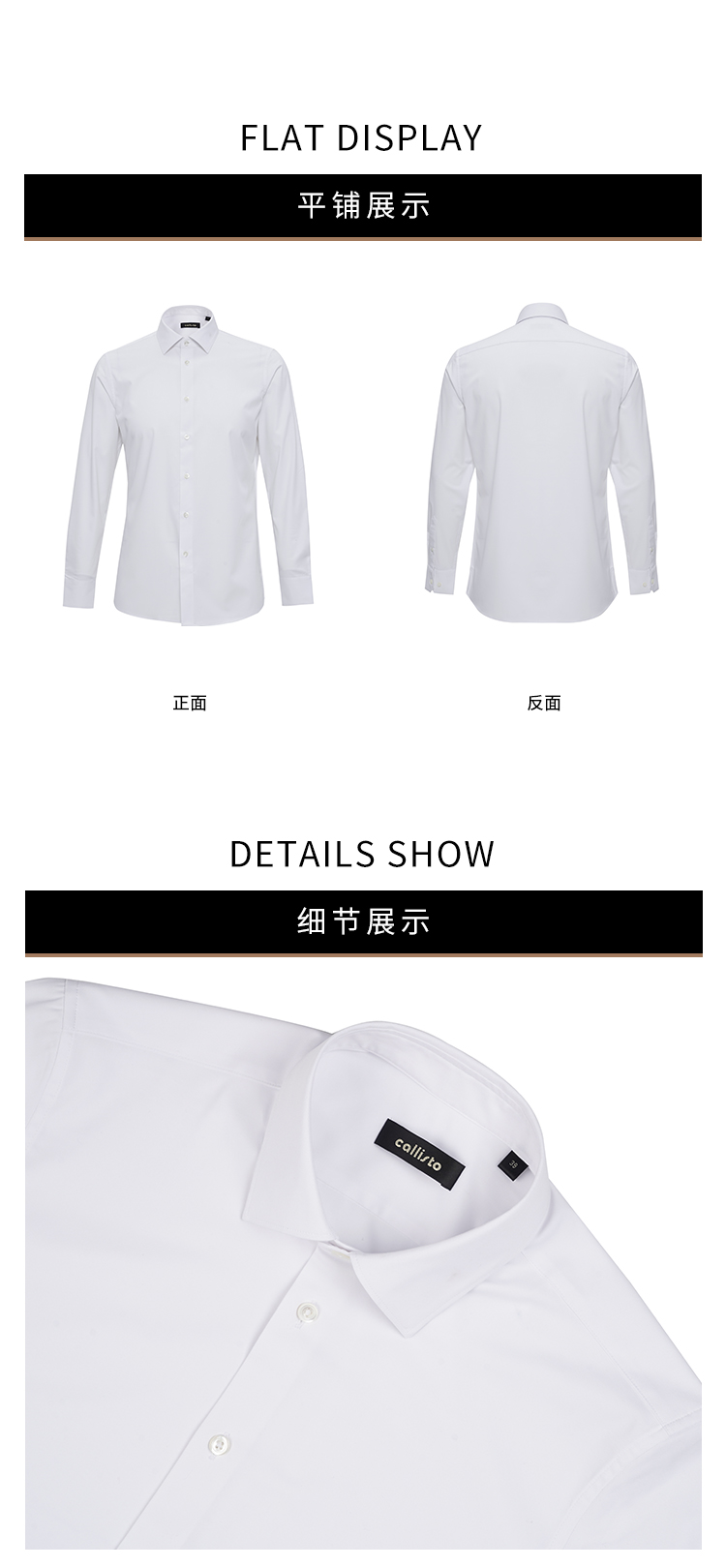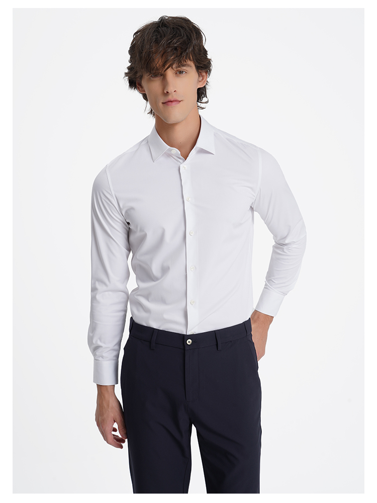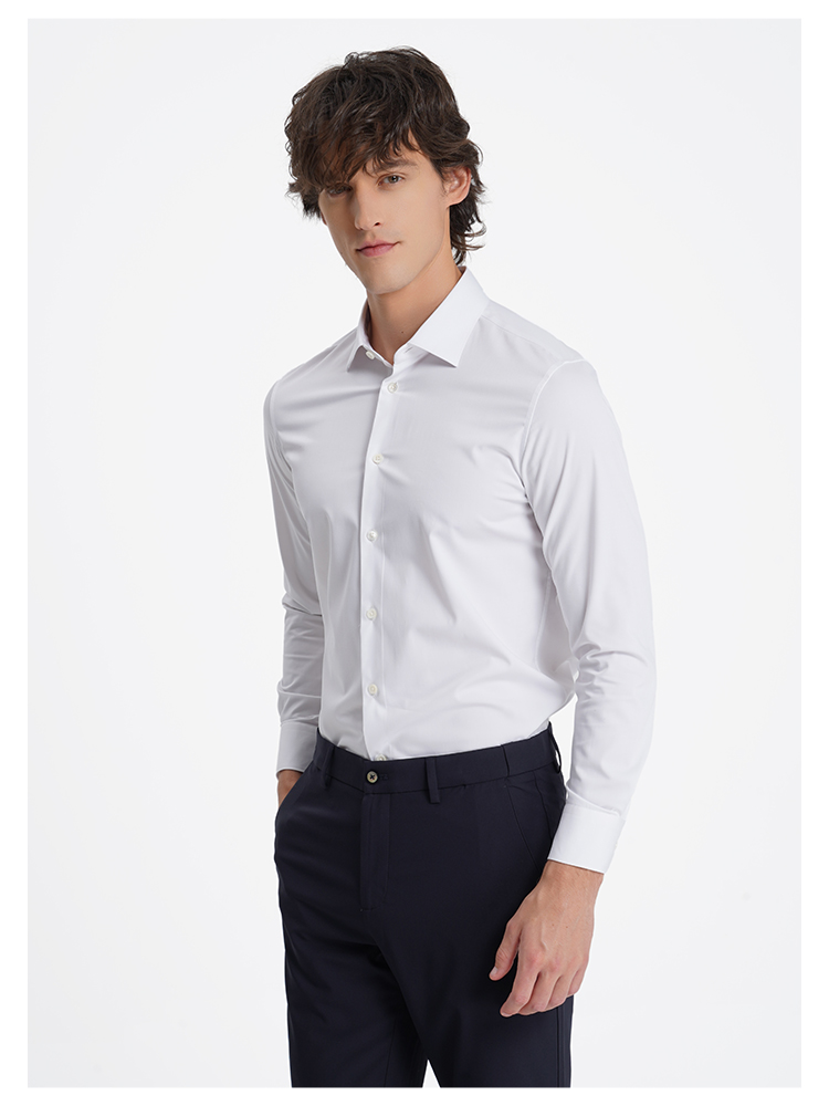 callisto高阶商务系列白色聚酯纤维混纺长袖衬衫