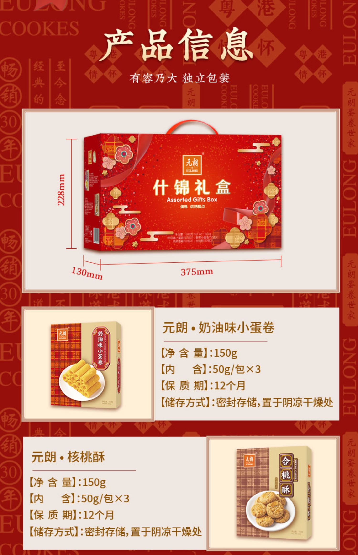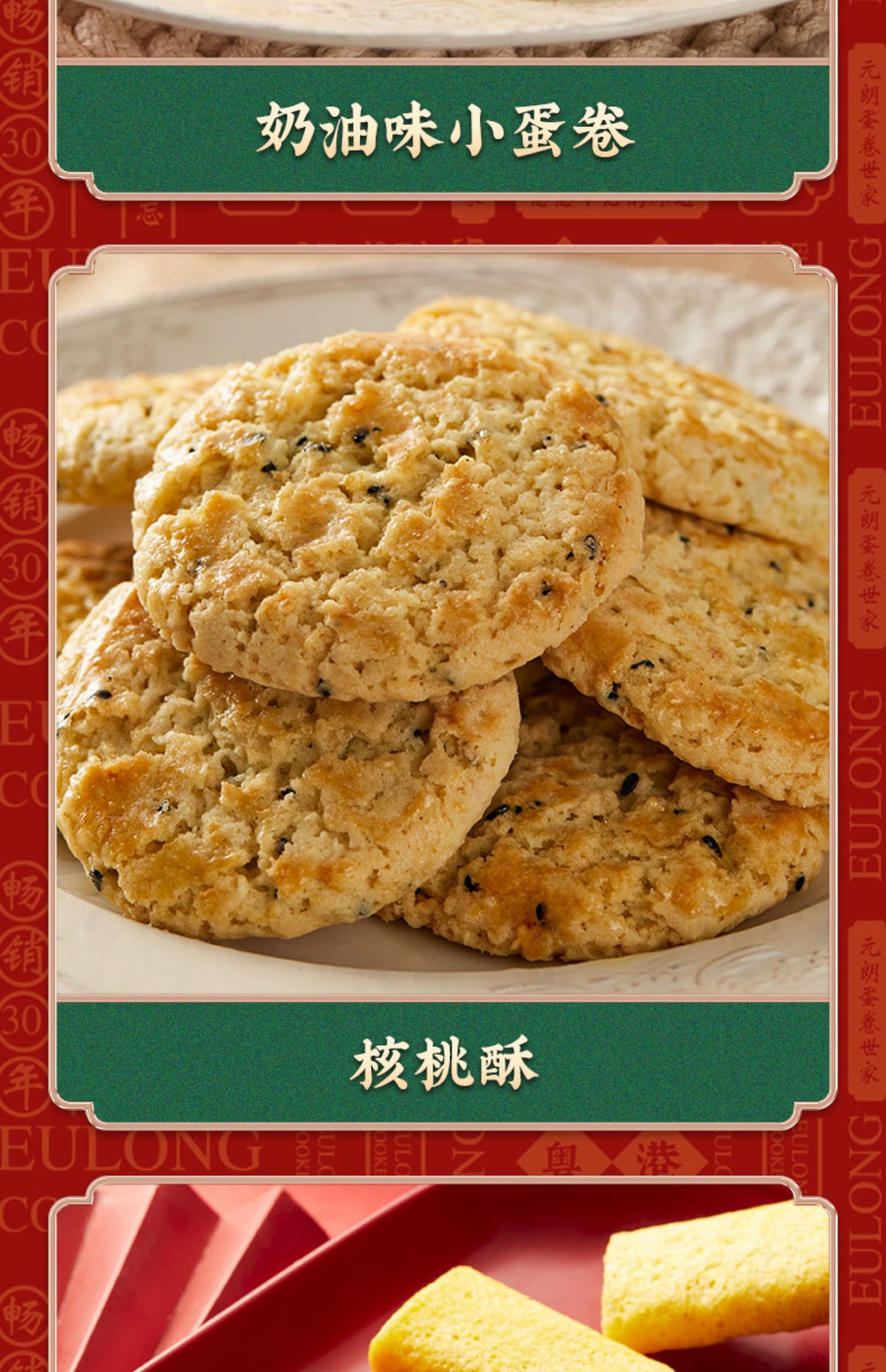 元朗合桃酥奶油香葱凤凰蛋卷饼干零食过年礼品年货礼盒装送礼600g