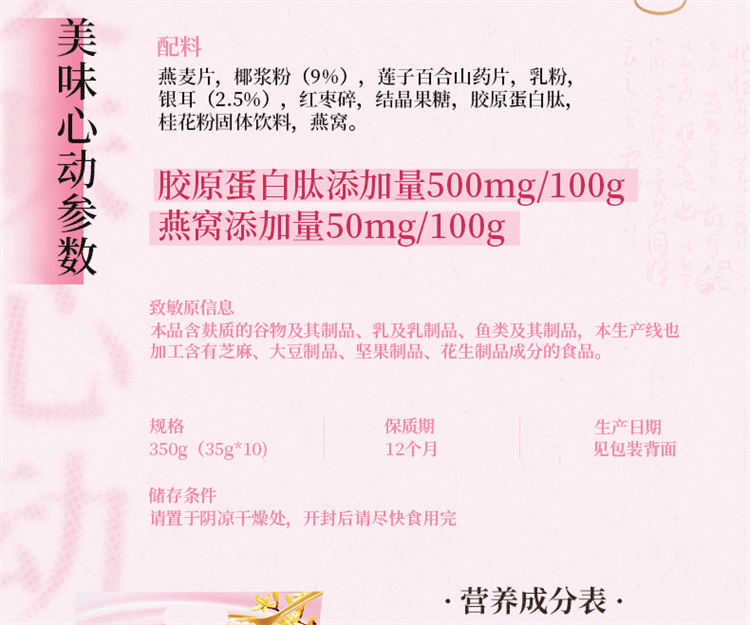 燕窝牛乳燕麦片350g内含35g*10袋药食同源即食早餐冲饮 元气滋养高蛋白燕麦片