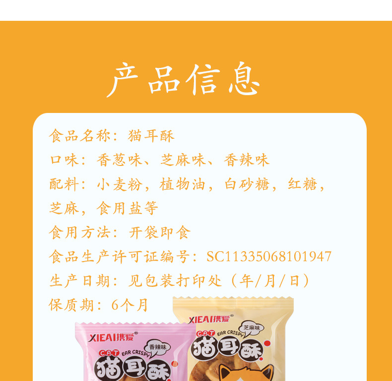 【19.9抢30包❗️香酥脆香猫耳朵】享受童年好滋味,8090年代童年小零食,还是小时候的味道,食材原料精心配比,制作工艺严格把控,办公室下午茶休闲小吃零食L