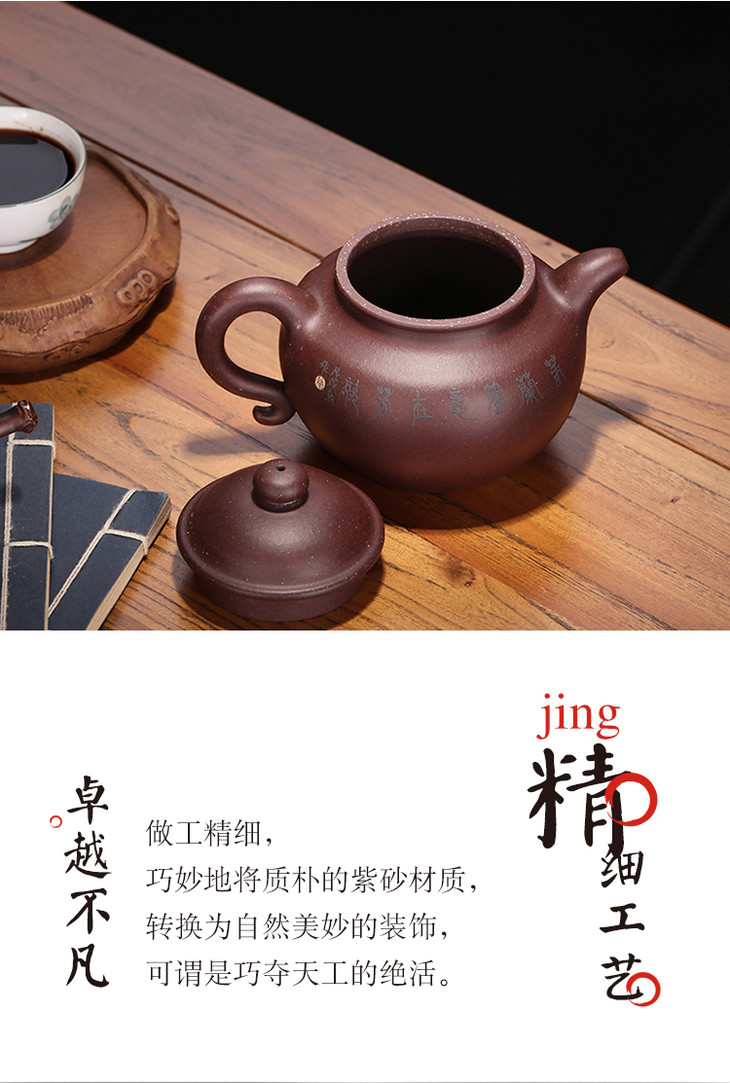 【坦然】 作者:冯娟(制壶)程文兵(陶刻) 泥料:紫泥 容量:280cc