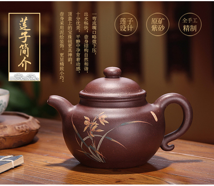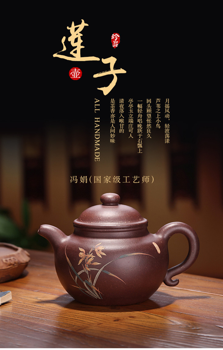 【莲子】 作者: 冯娟(制壶) 褚萍(泥绘)泥料:原矿紫泥 容量:300cc