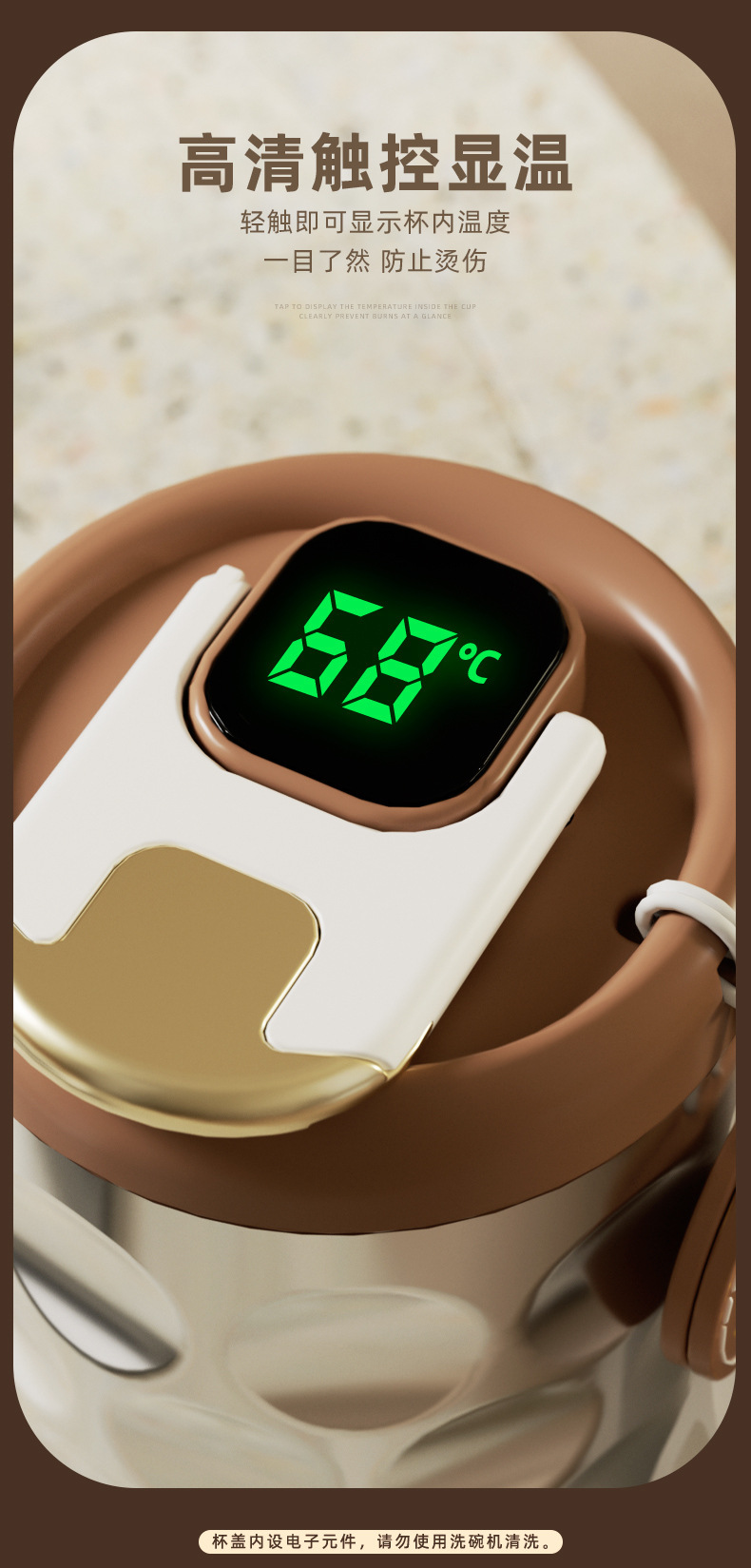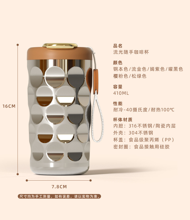 「星愿随行杯!触控显温」菱形保温咖啡杯陶瓷内胆不锈钢温保温杯随行杯颜值智能测温水杯餐饮用具