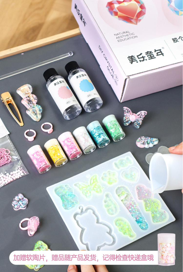 【0基础可做的滴胶首饰套装】美乐童年水晶滴胶套装做发夹 做戒指 无需烘烤 DIY饰品自己做 个个精致耐看 儿童玩具