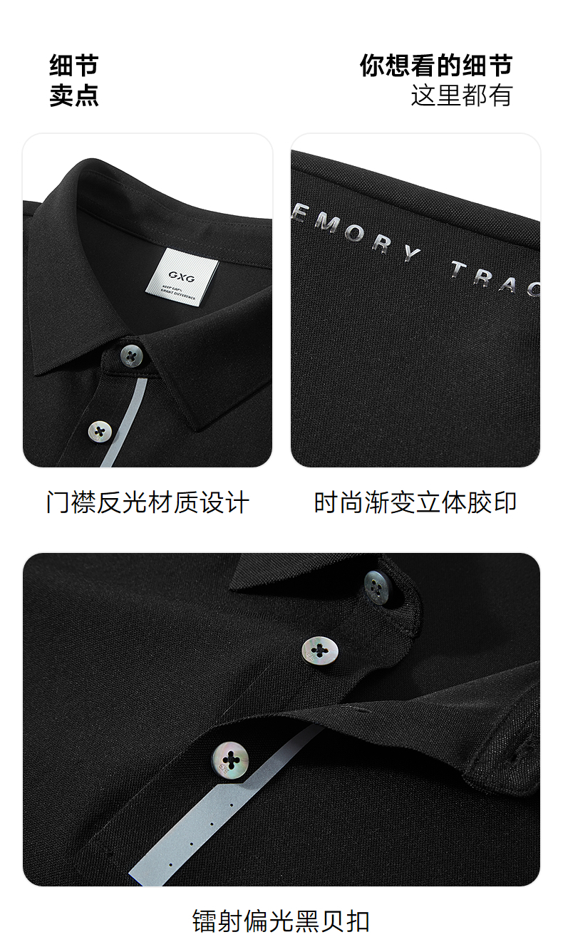 【凉感】GXG男装 门襟反光运动polo衫短袖男休闲上衣 25夏新品