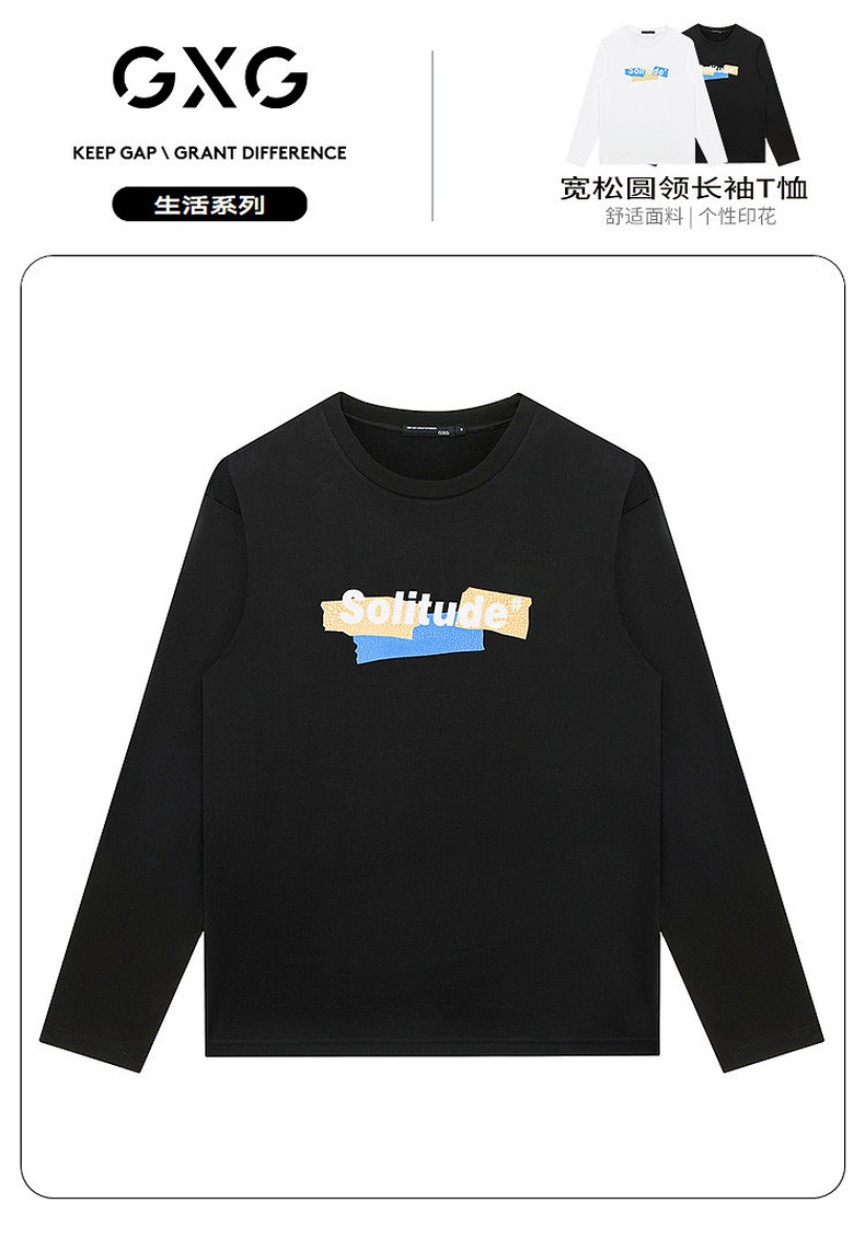 GXG男装【创意字母印花】百搭男士纯棉透气长袖T恤K&C