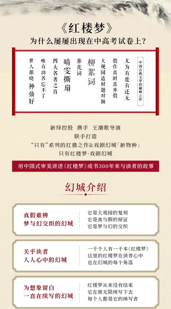 内容:只有红楼梦戏剧幻城两日双人票*1(3选3)+对应酒店一晚住宿(含双早);