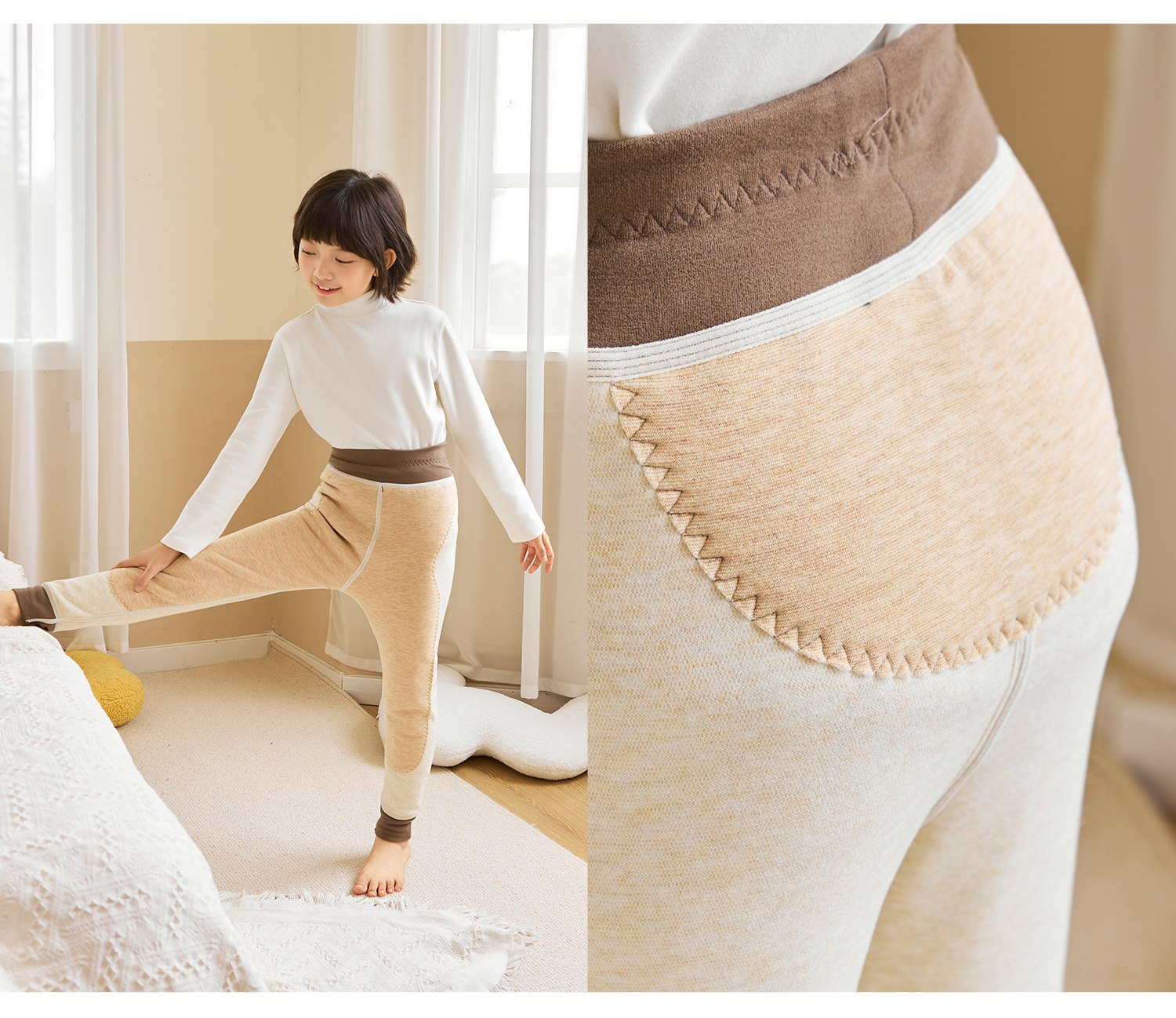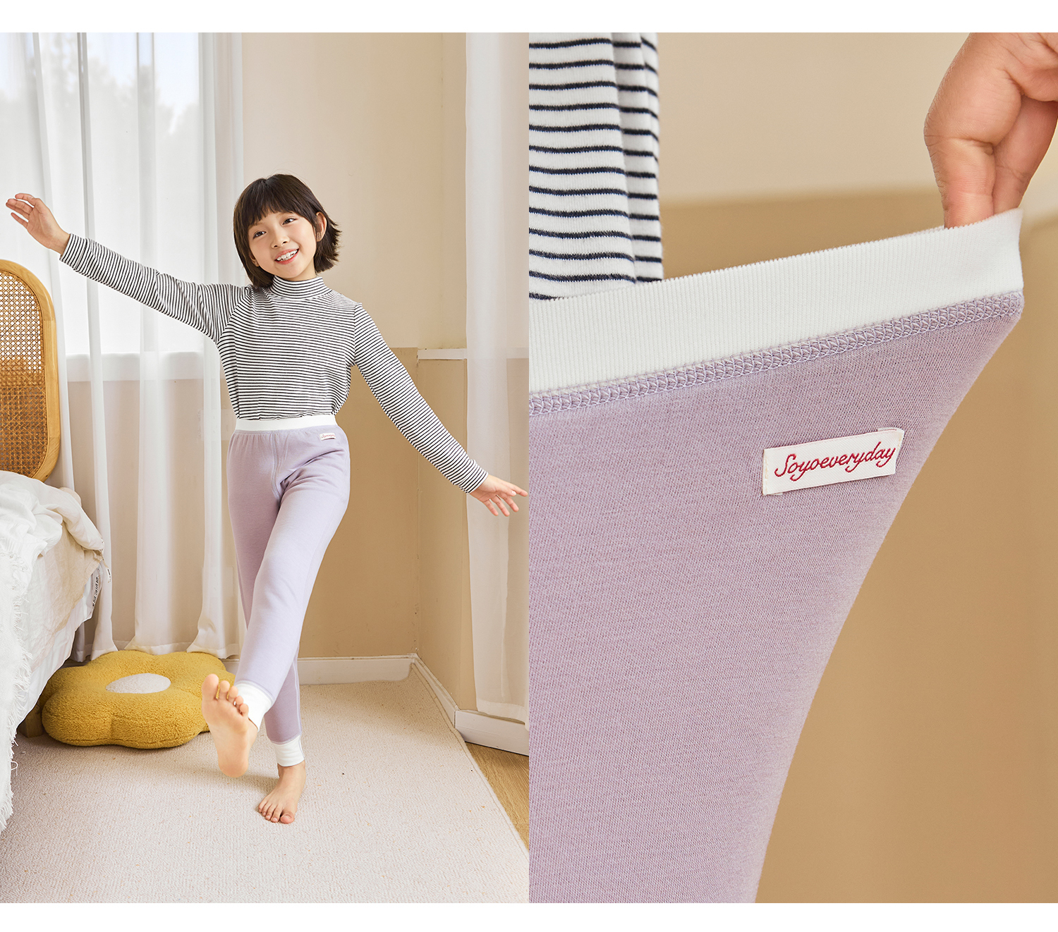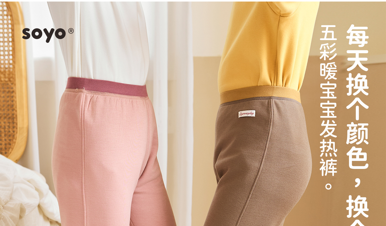soyo舍予良仓7A抗菌磨毛亲肤双层撞色边保暖裤