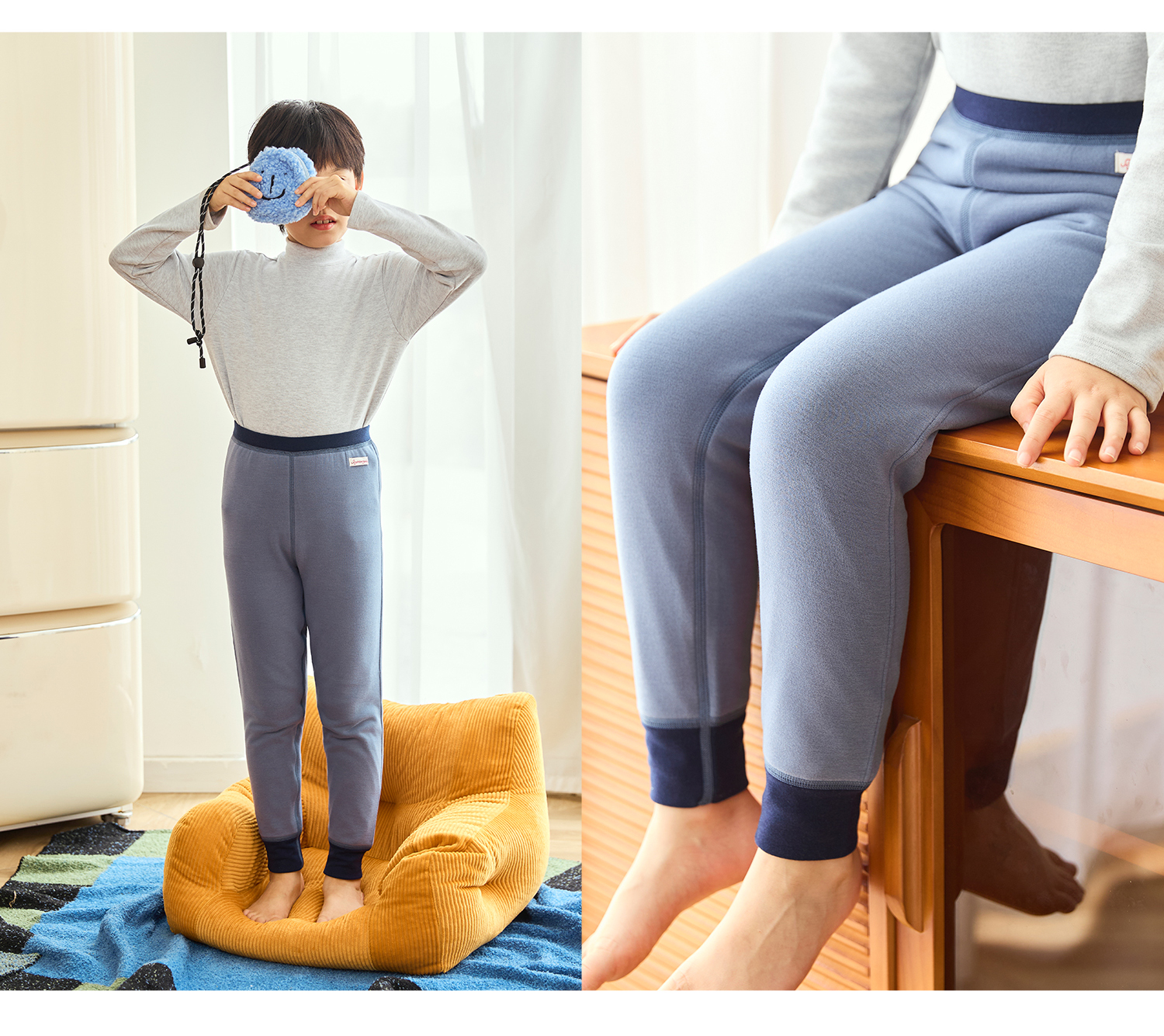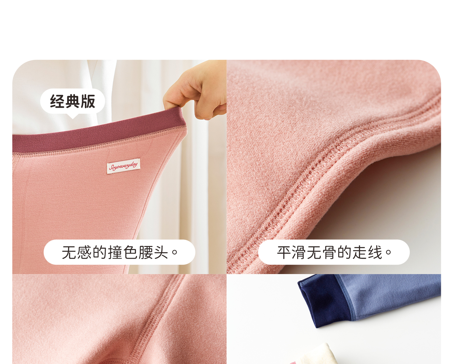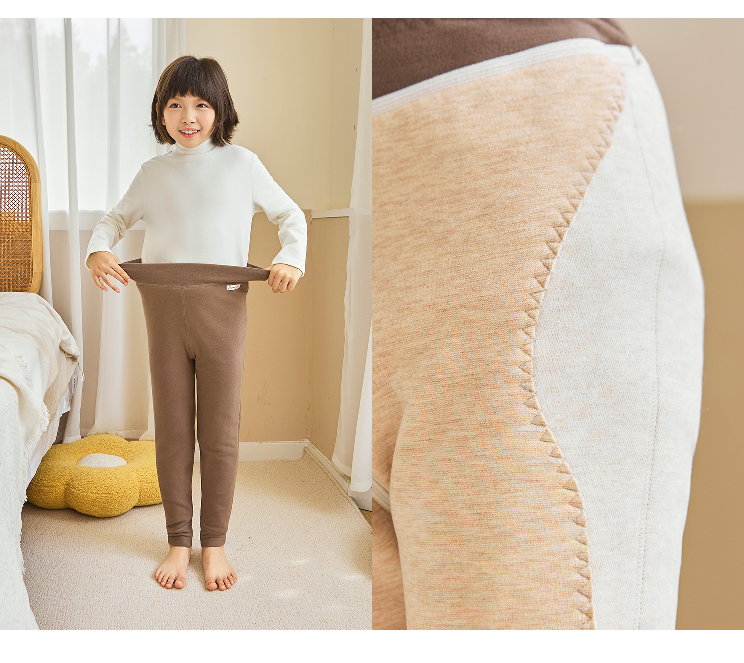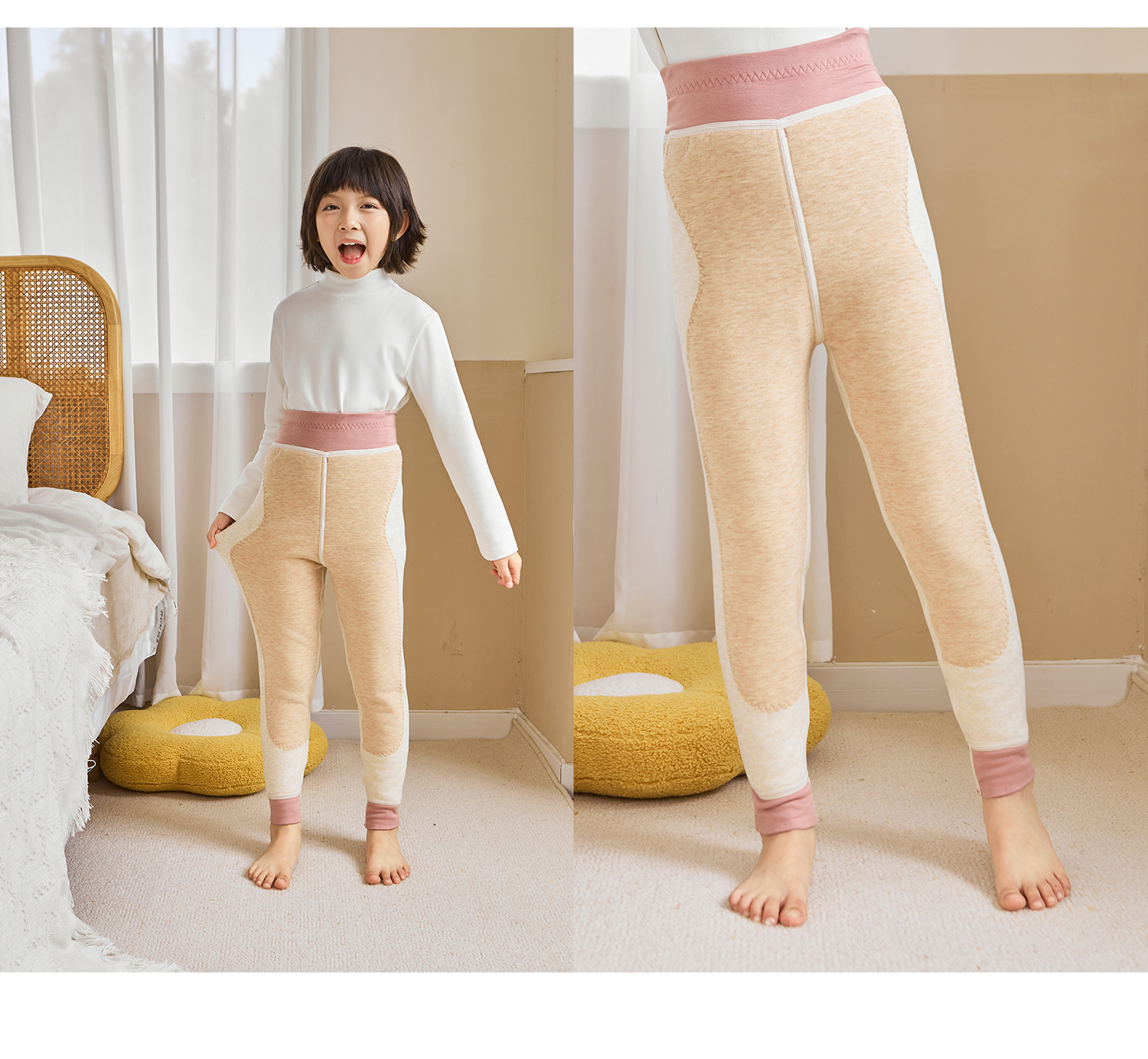 soyo舍予良仓7A抗菌磨毛亲肤双层撞色边保暖裤