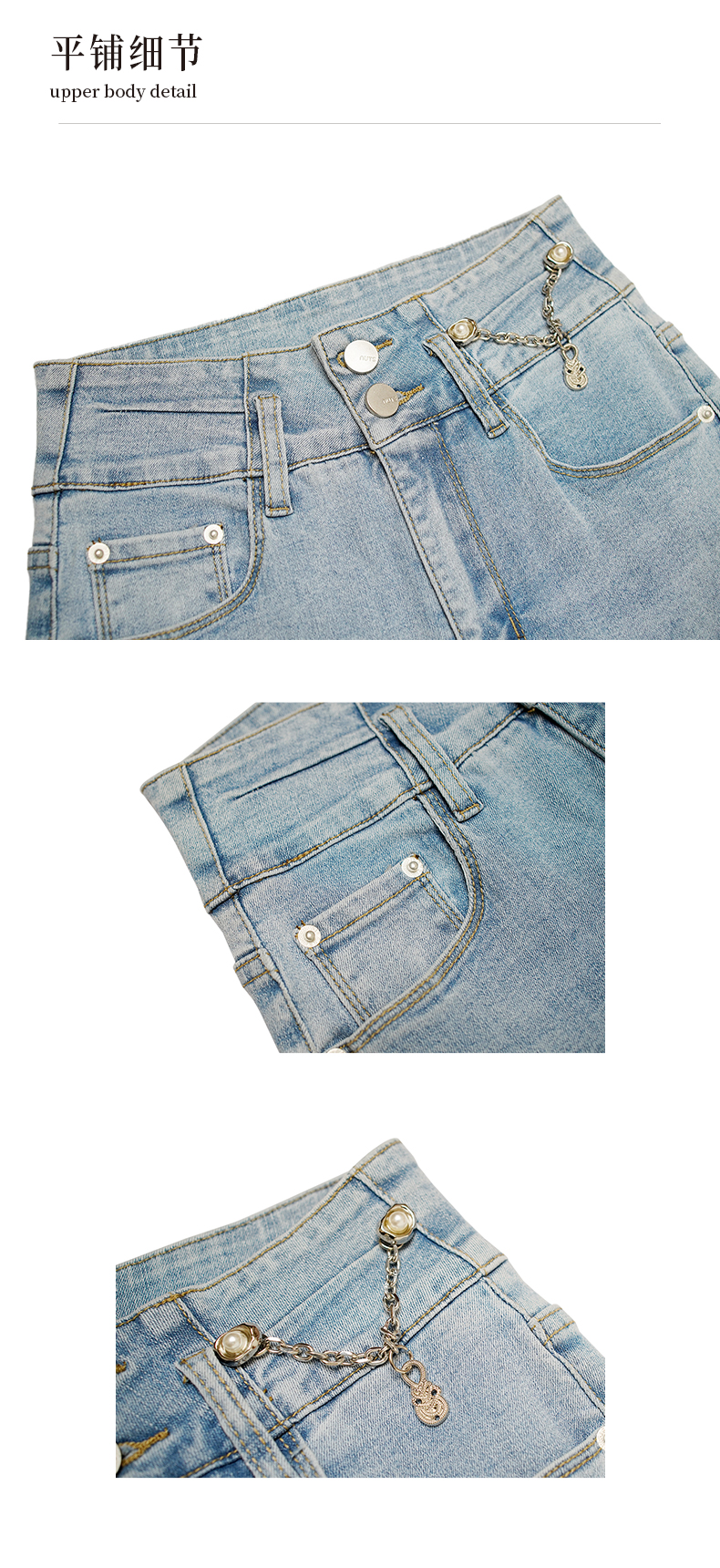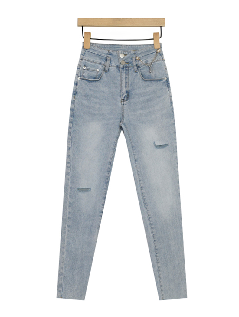 NUTS烟管裤铅笔裤水洗牛仔短裤女浅色百搭326113378