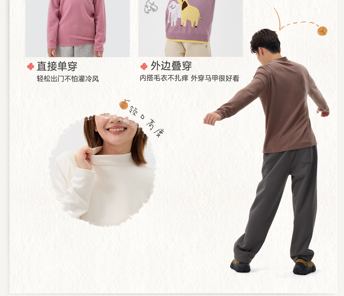 【小暖皮山茶油养肤】Q21小暖皮厚暖刺绣半高领上衣吸湿发热保暖打底衫