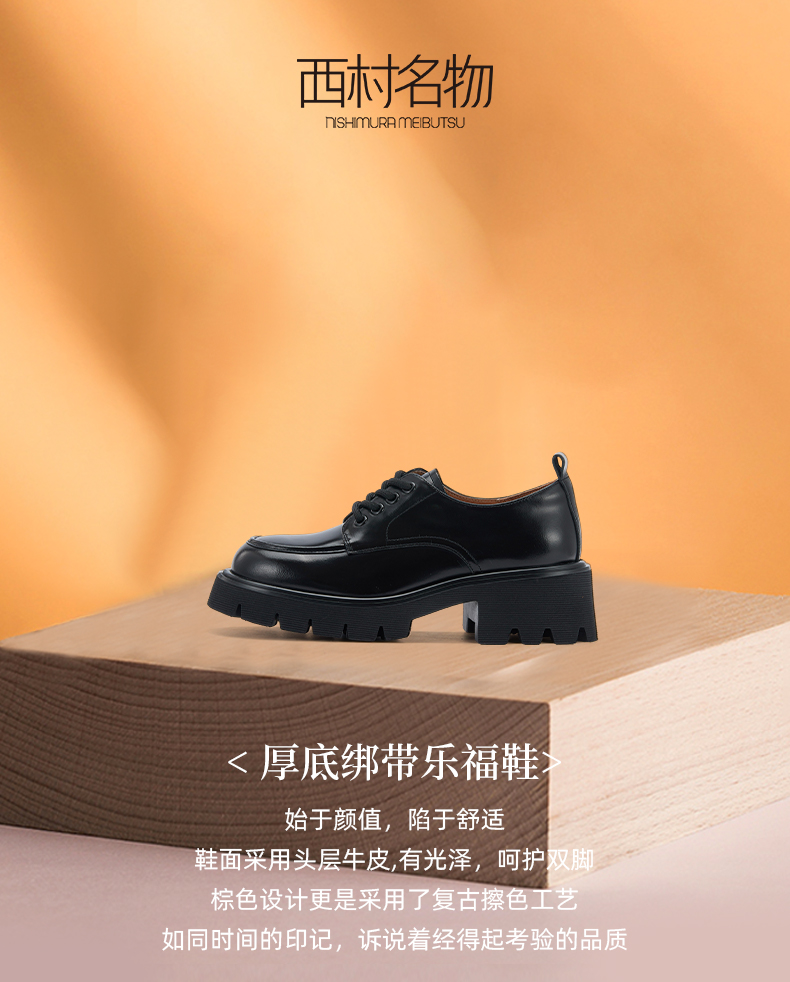 西村名物2024春季新品真皮时尚单鞋气质厚底增高绑带乐福鞋X24AM11491