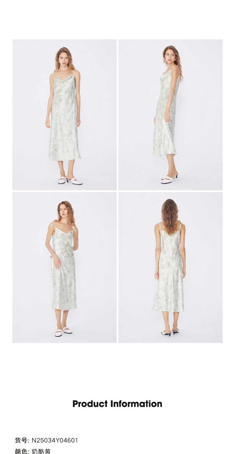 NEELLY纳俪商场同款春新款缎面修身吊带连衣裙女知性优雅显瘦长裙N25034Y04601
