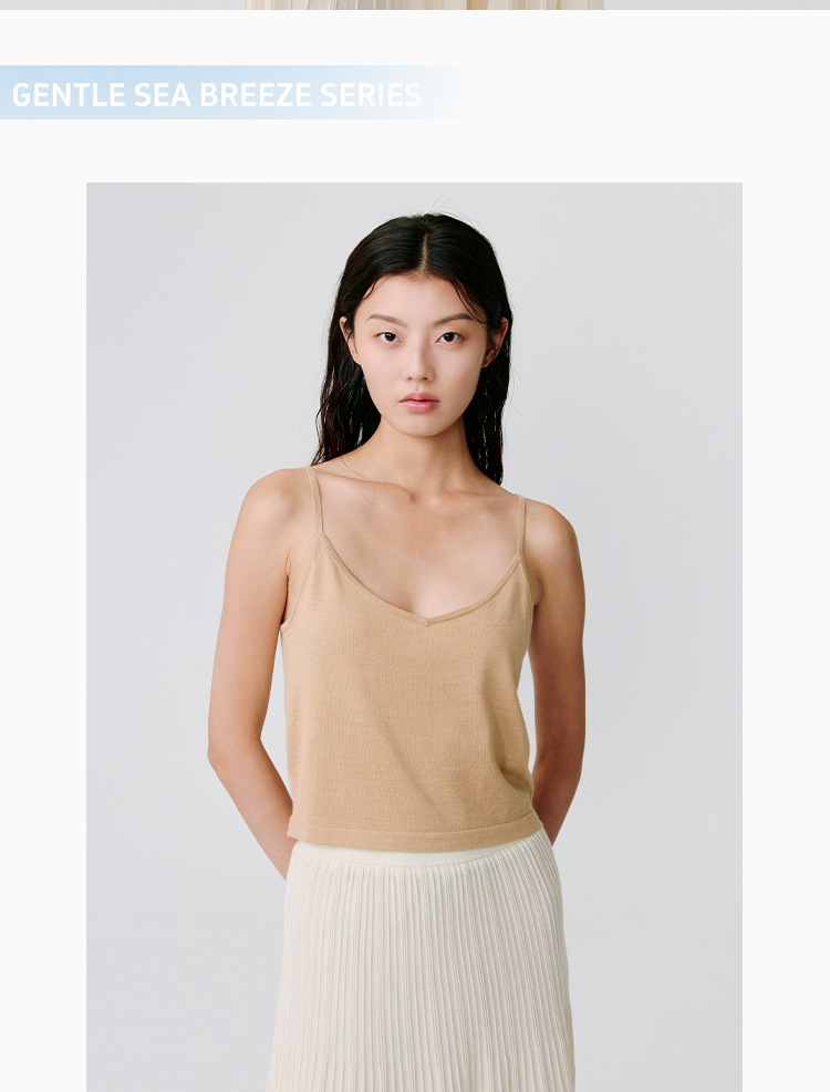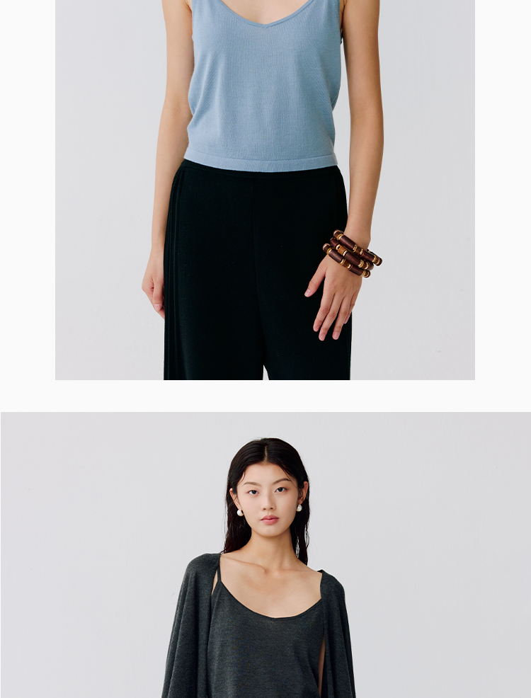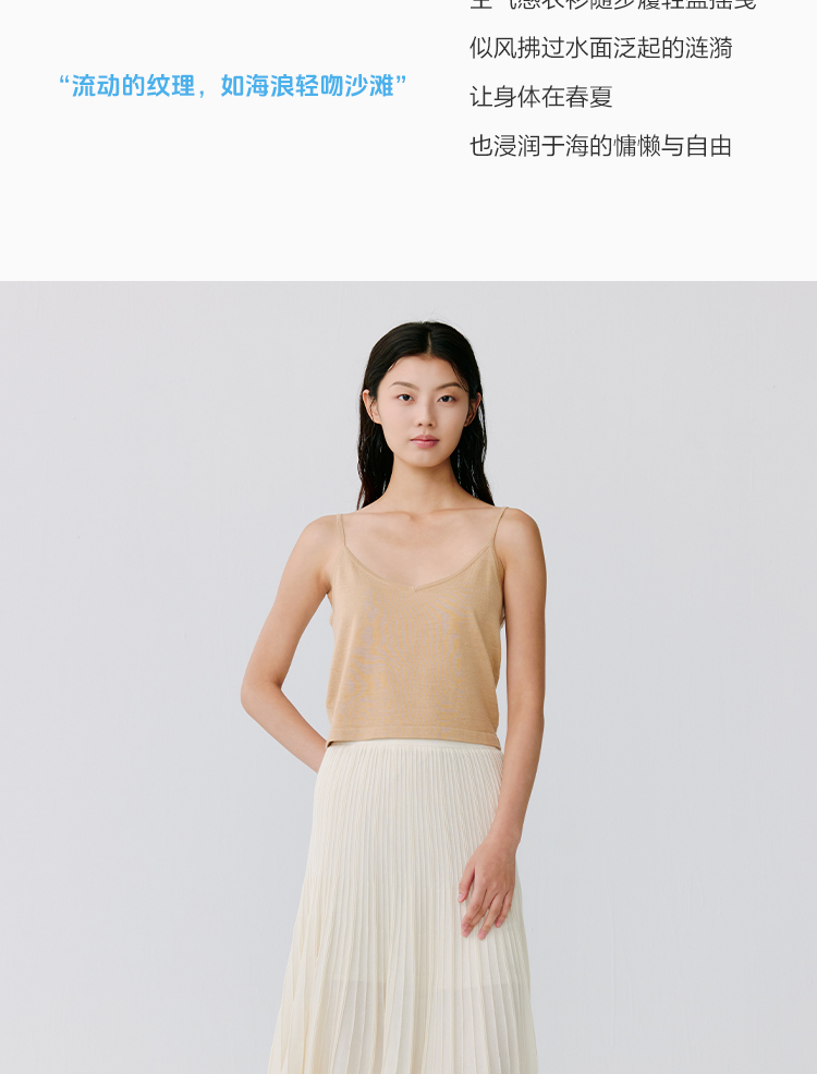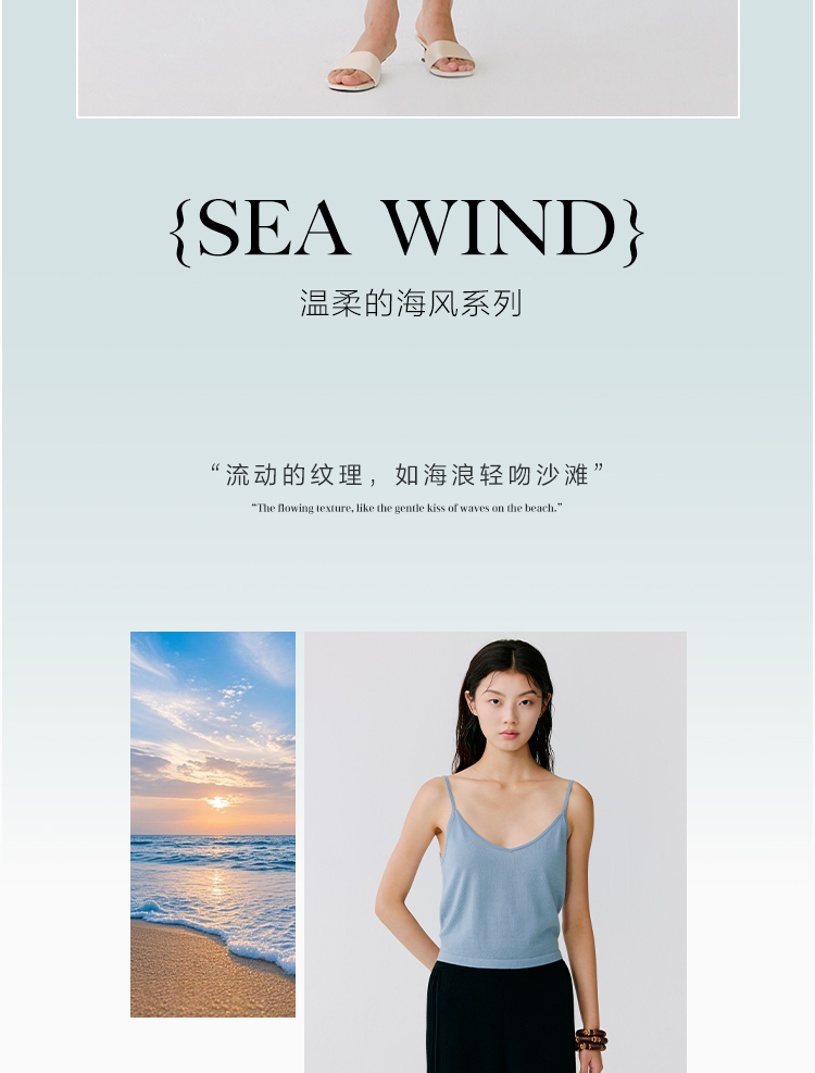 东黎 • 温柔的海风 波光透影 桑蚕丝山羊绒 女士短款背心 5110