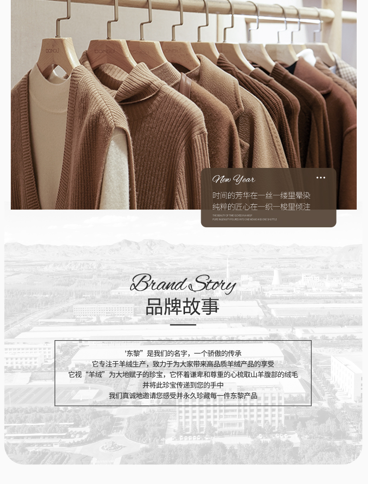 东黎羊绒是赤峰东荣集团自主品牌,自有牧场/羊绒制品全产业链优势,实现了羊绒从“牧场”到“商场”的华丽转变。