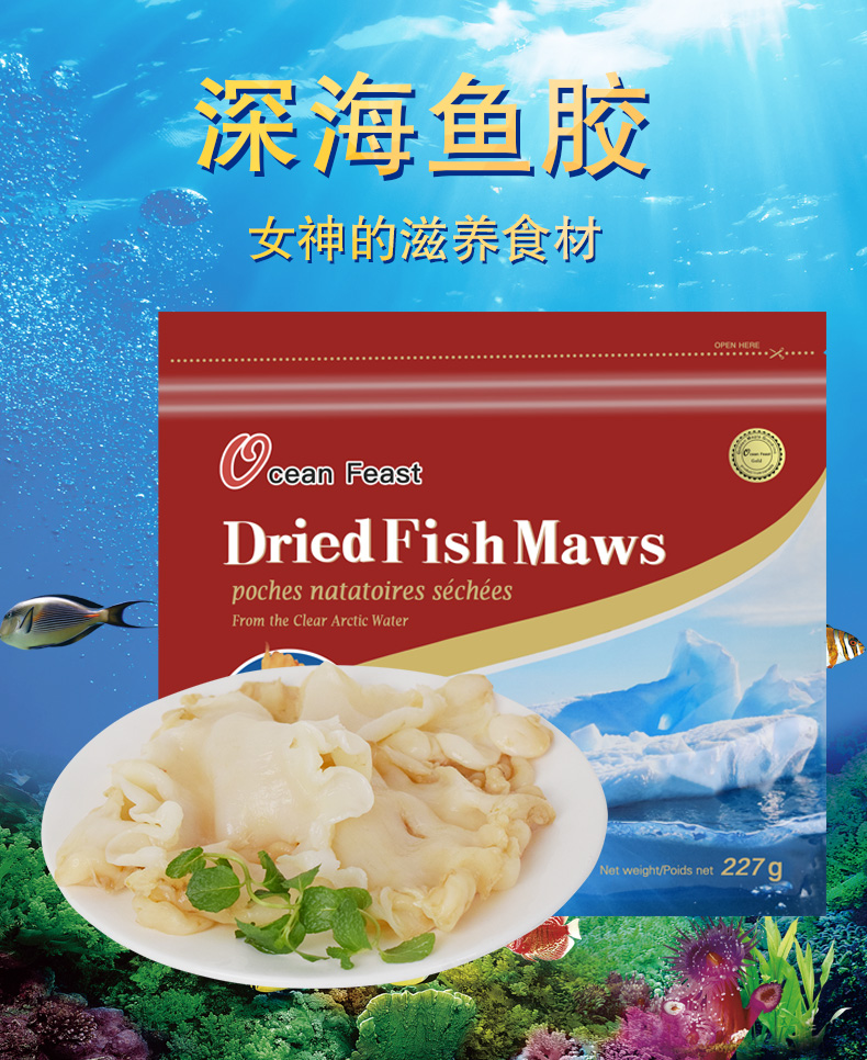 Ocean Feast北极冰鳕鱼胶 227g/袋,白金级大号(15片左右/袋)(一般贸易)
