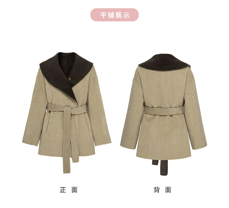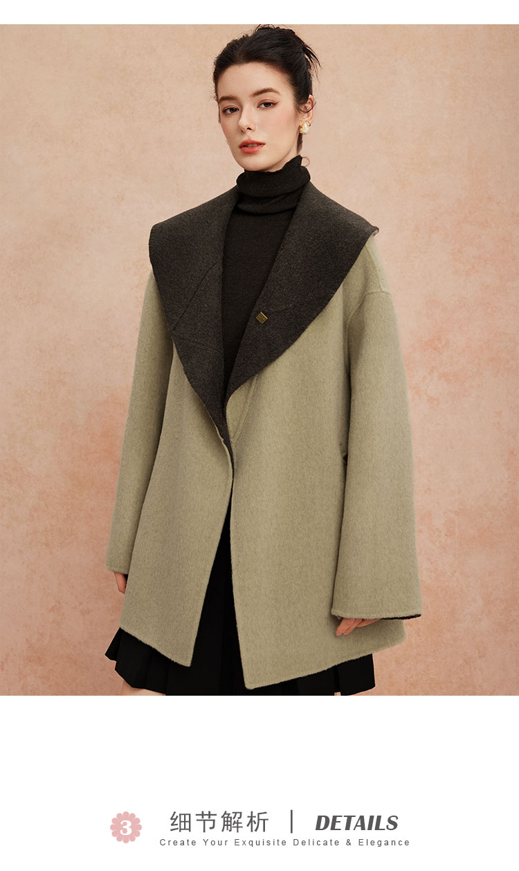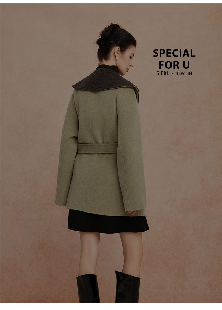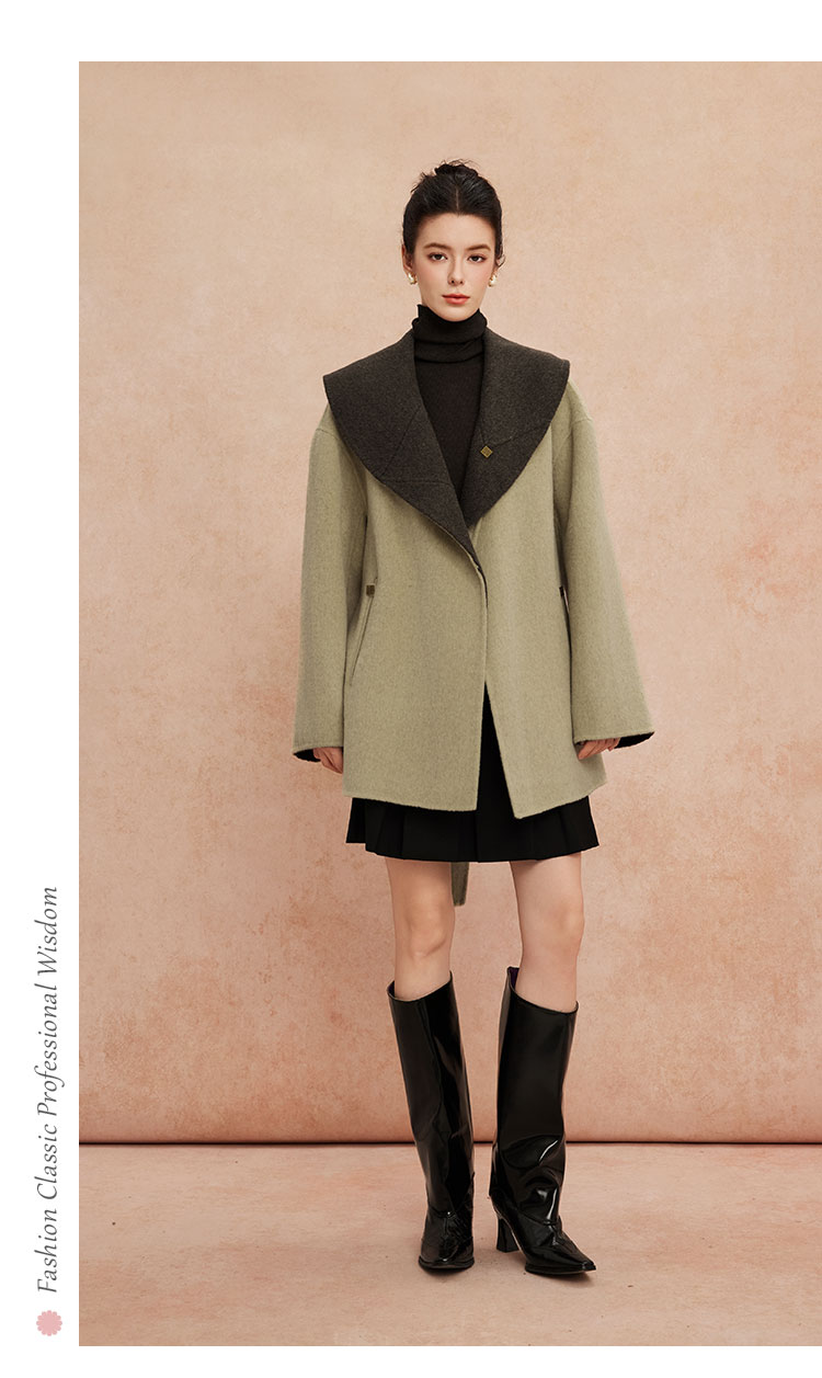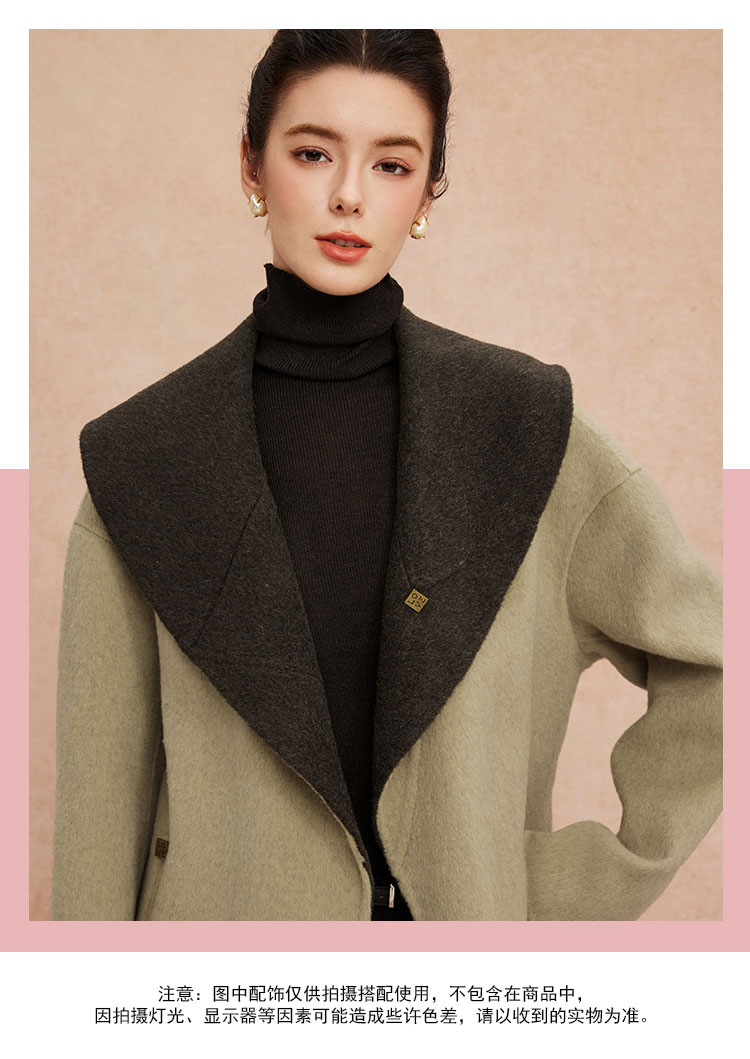 QH955斯尔丽25新款高级感撞色大翻领收腰时尚减龄显瘦双面呢大衣