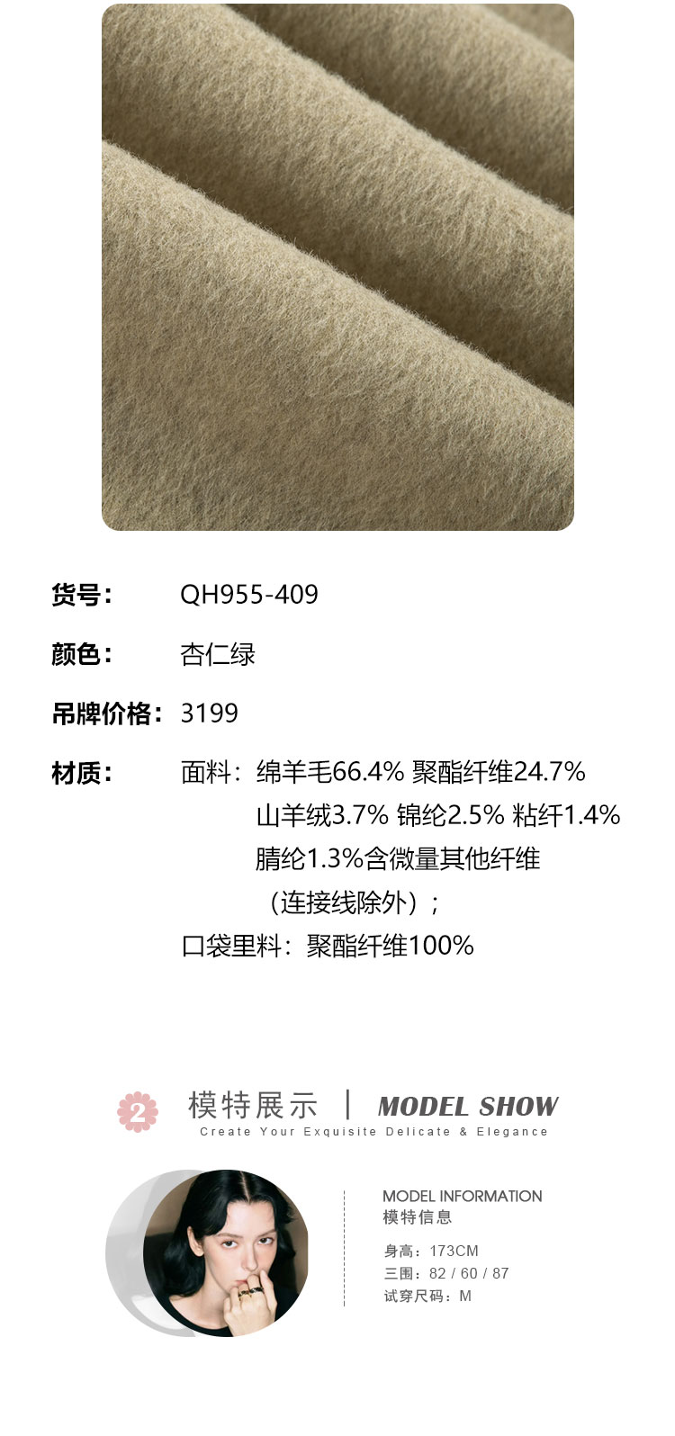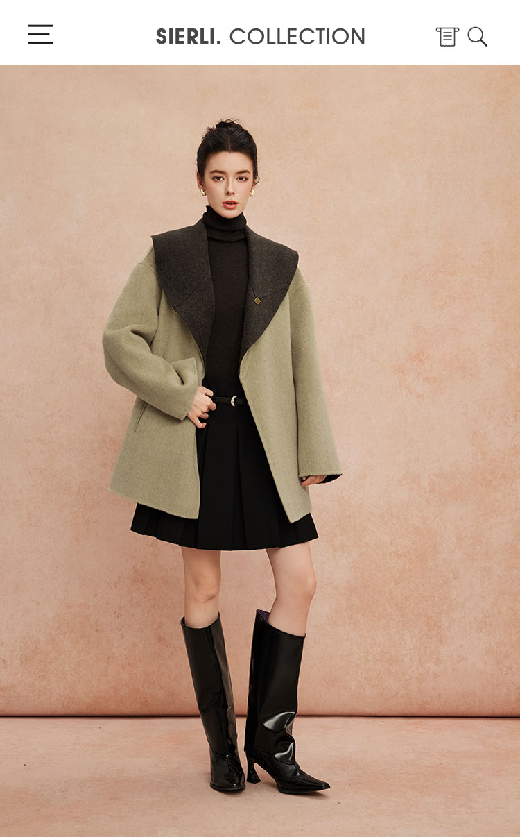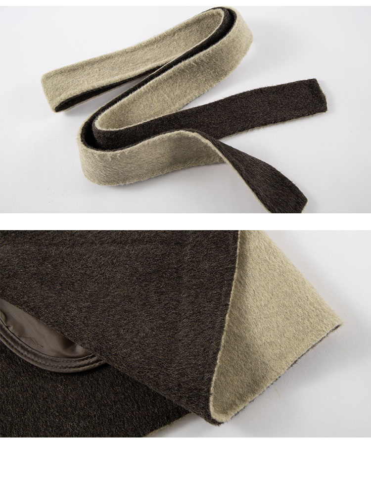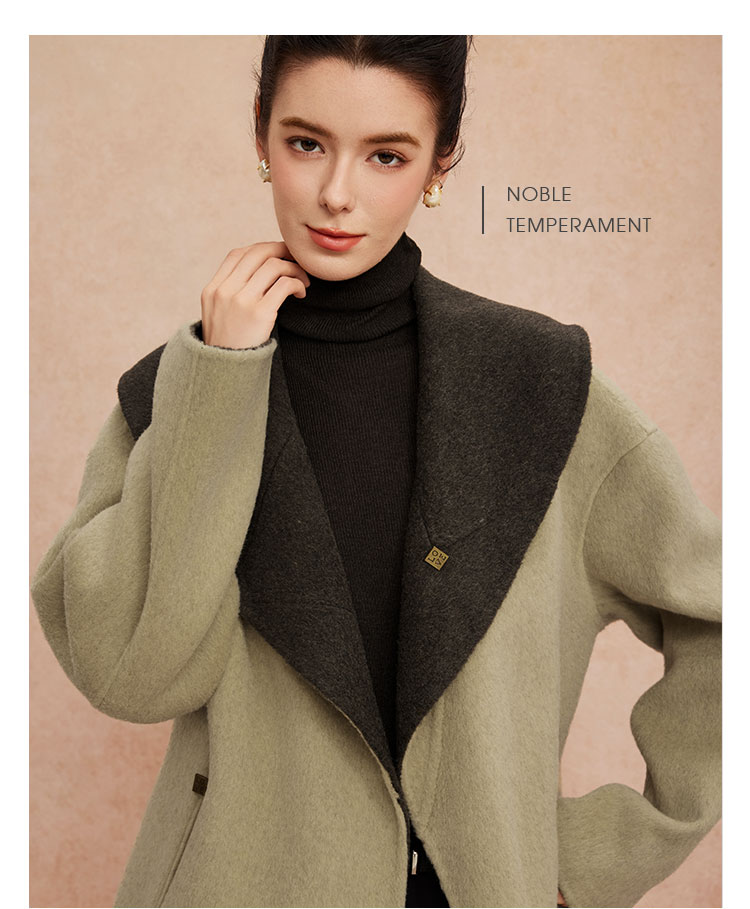 QH955斯尔丽25新款高级感撞色大翻领收腰时尚减龄显瘦双面呢大衣