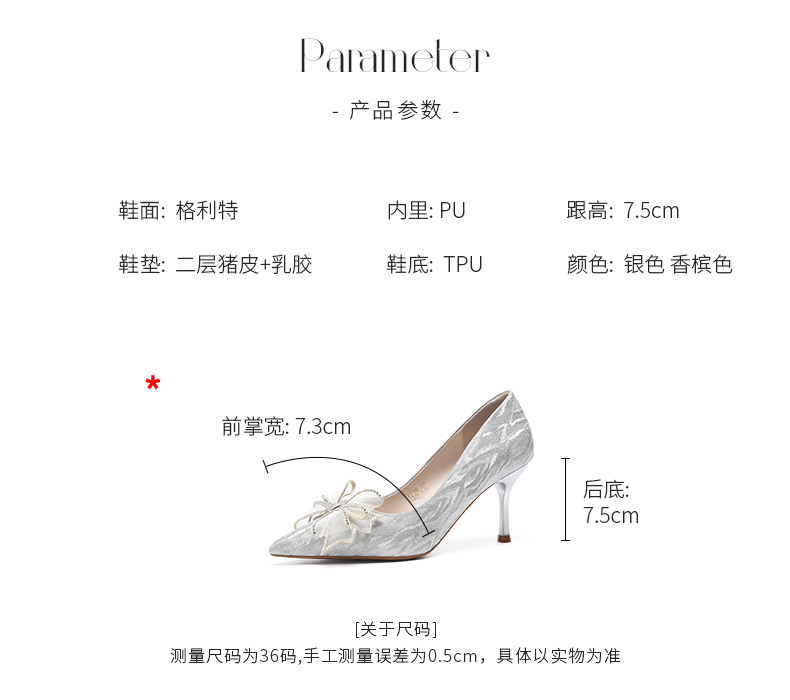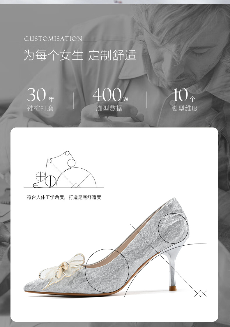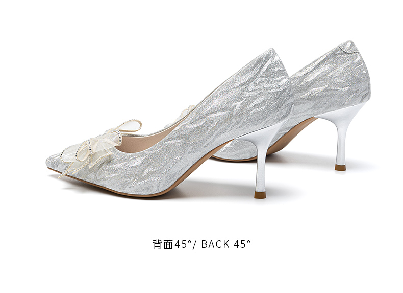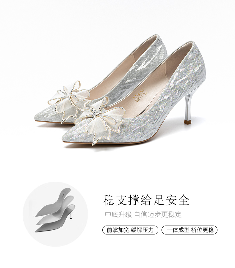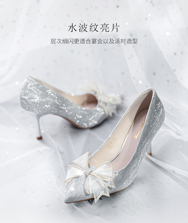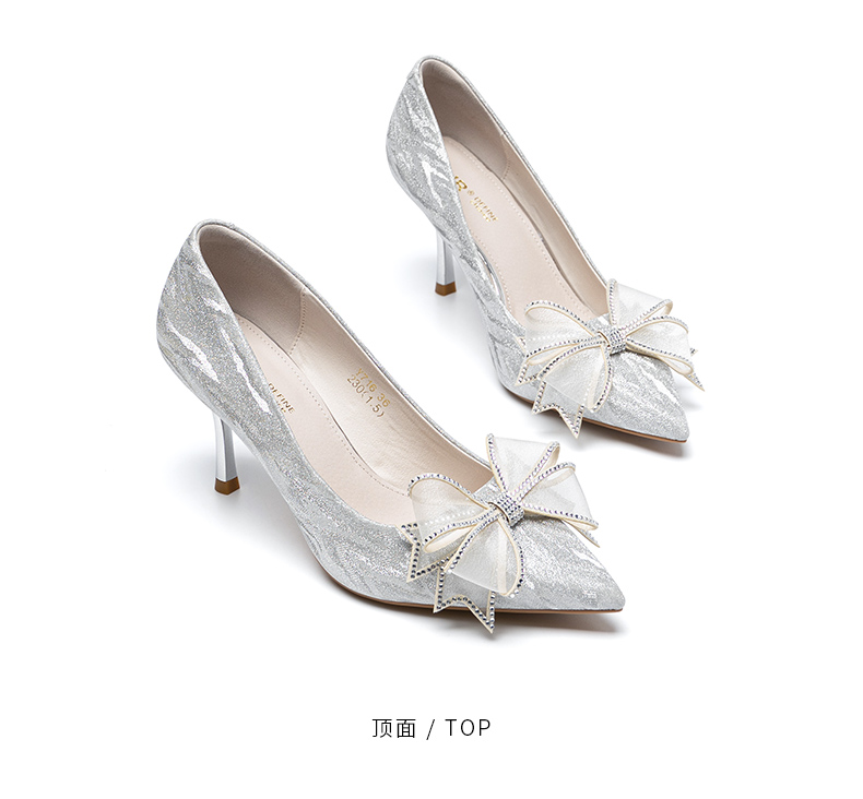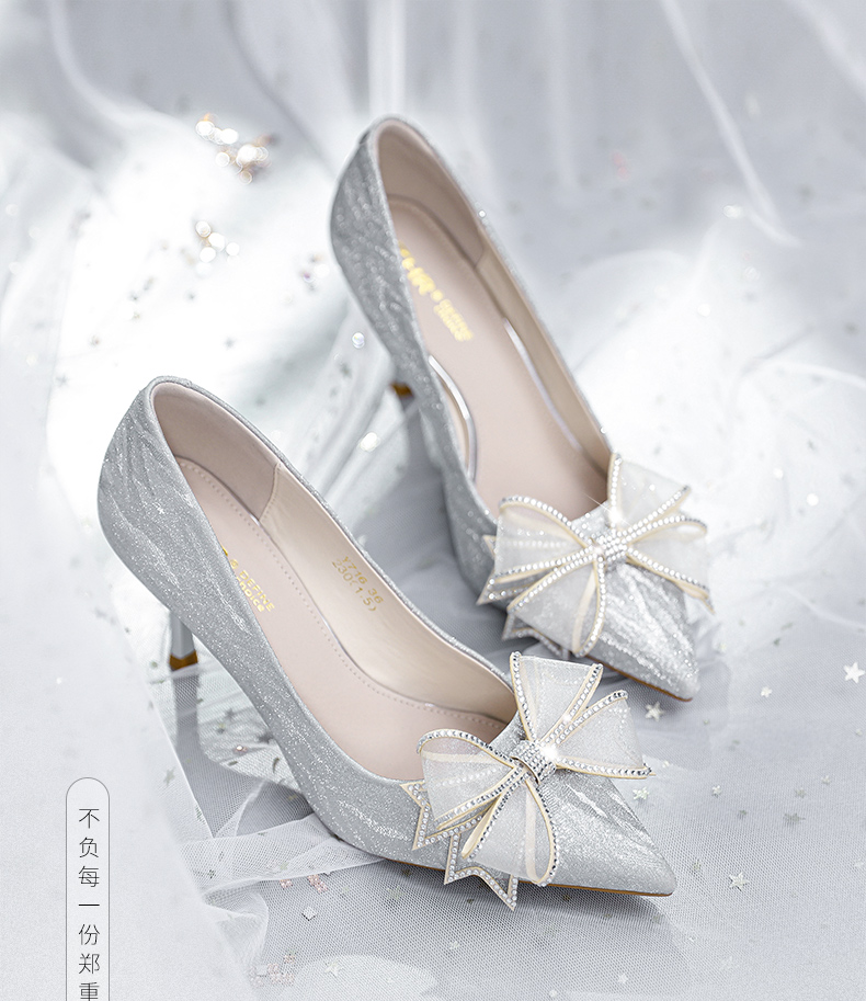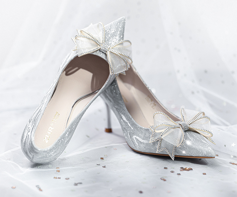 ZHR尖头蝴蝶结高跟鞋女2023新款婚鞋法式气质单鞋百搭水钻新娘鞋